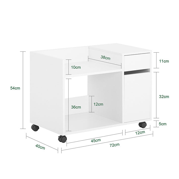 De Archiefkast is ontworpen voor efficiëntie en organisatie in uw werkruimte. Met een groot compartiment voor printers, een lade en een deur biedt hij plaats aan al uw documenten en bezittingen. De kast is uitgerust met twee geremde rollen voor stabiliteit en gemakkelijke mobiliteit.