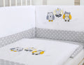 Baby beddengoed set 120x90 cm met bumper - Grijze uilen met grijze en gele borduursels