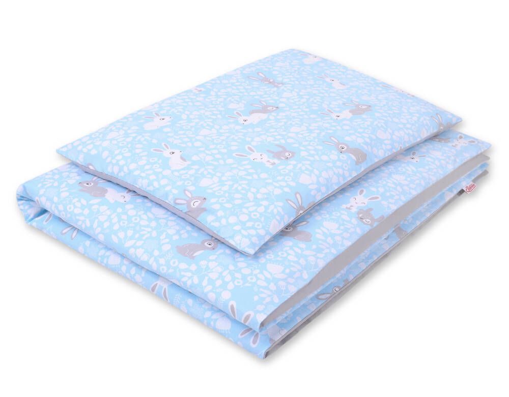 Dubbelzijdige baby katoenen beddengoedset 2-delig - blauwe konijntjes/grijs