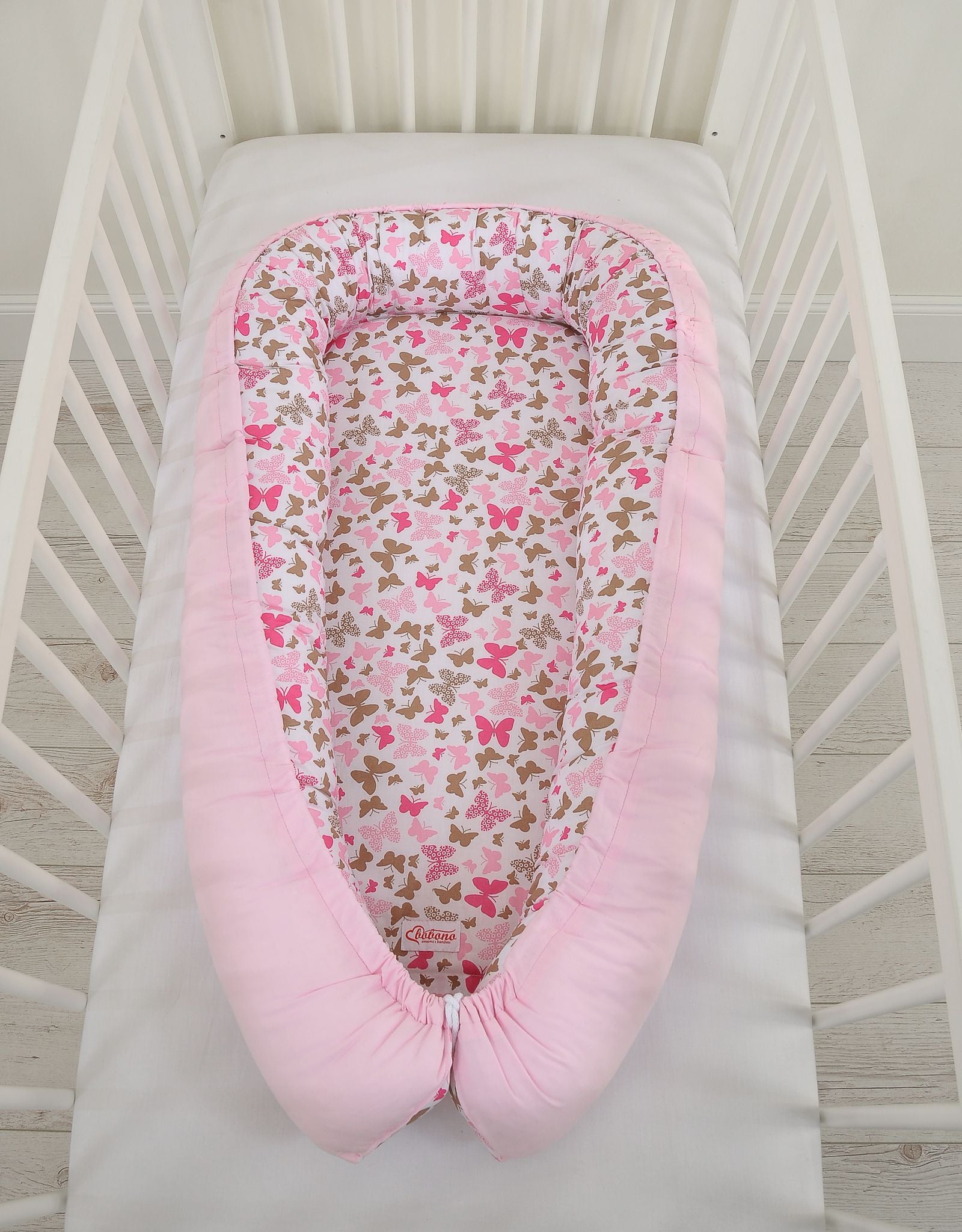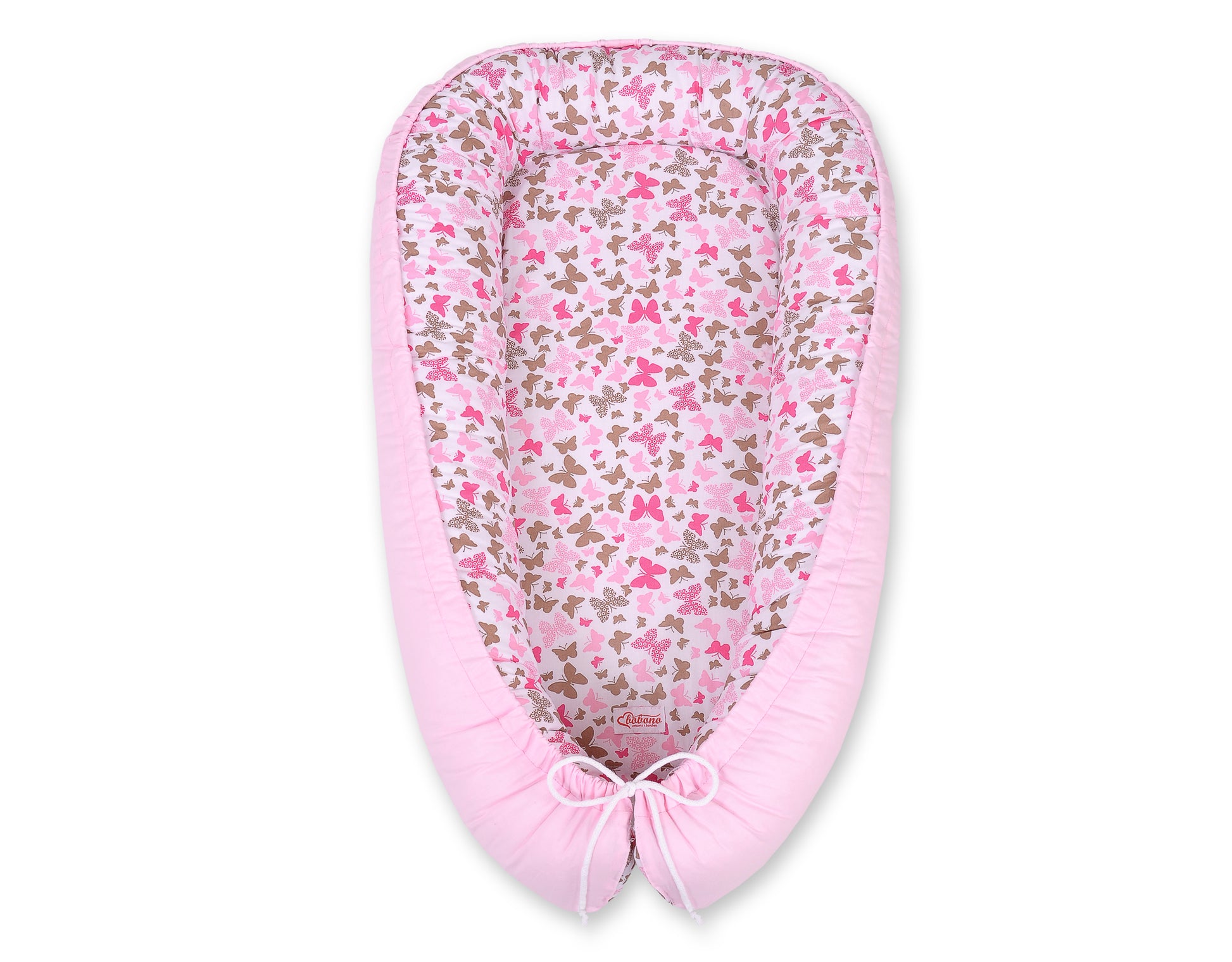 Baby nest dubbelzijdige Premium Cocoon voor baby's BOBONO – Roze vlinders/roze