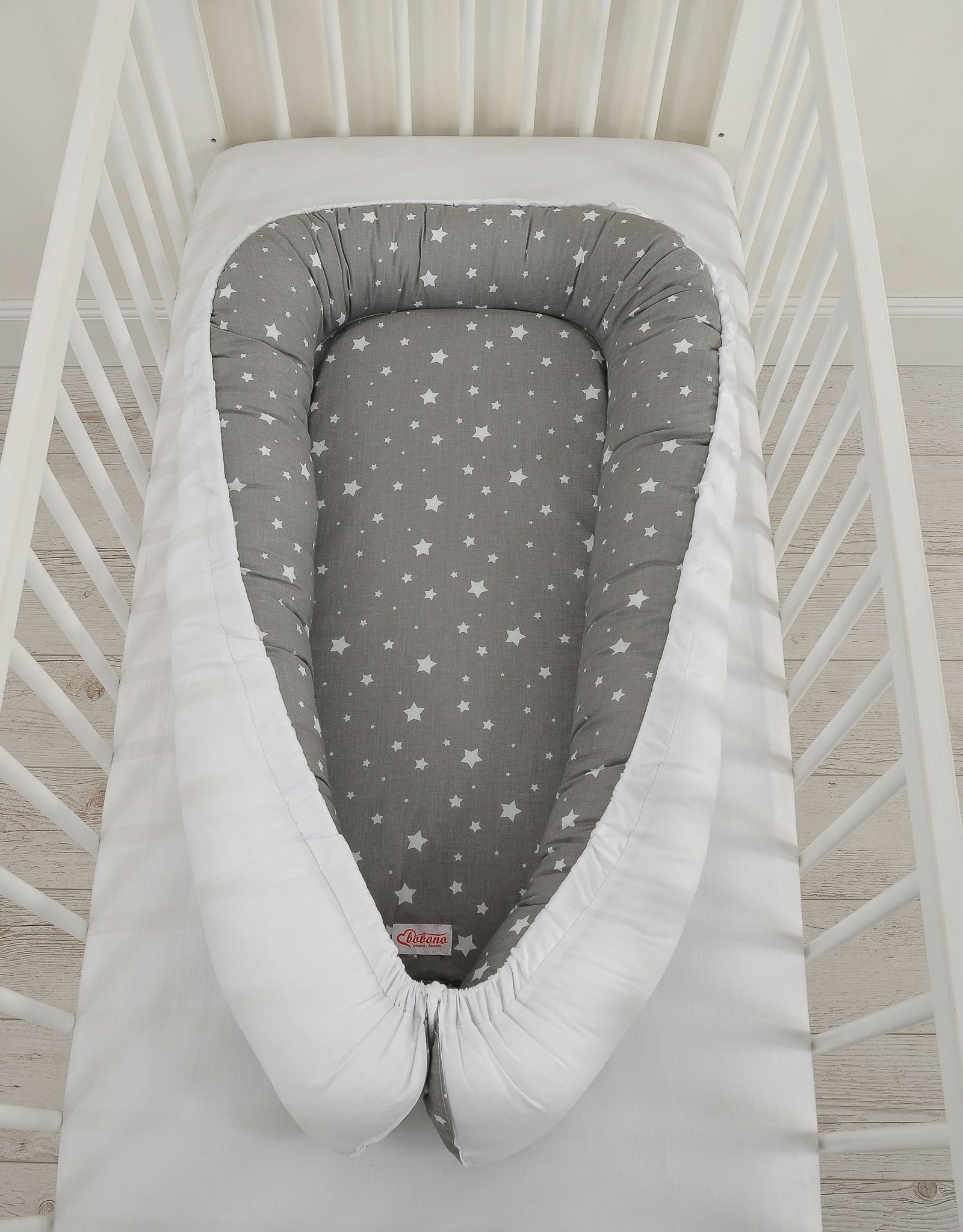 Baby nest, cocon, Oeko-Tex katoen, verstelbaar, dubbelzijdig, BOBONO Mini Stars Wit/Wit