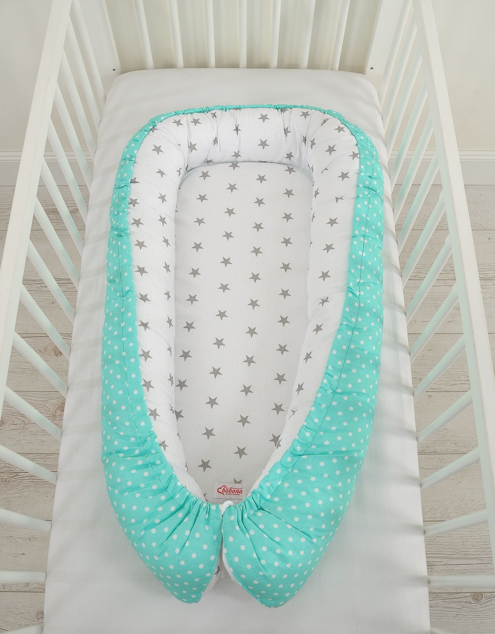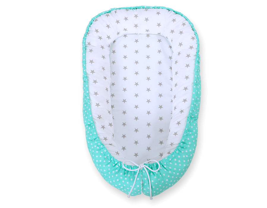 Baby Nest Premium Cocoon Double-Sided - Grijze Sterren / Mint Stipjes