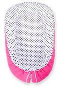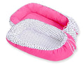 Baby nest dubbelzijdig Premium Cocoon voor baby's BOBONO - zwart met roze stippen
