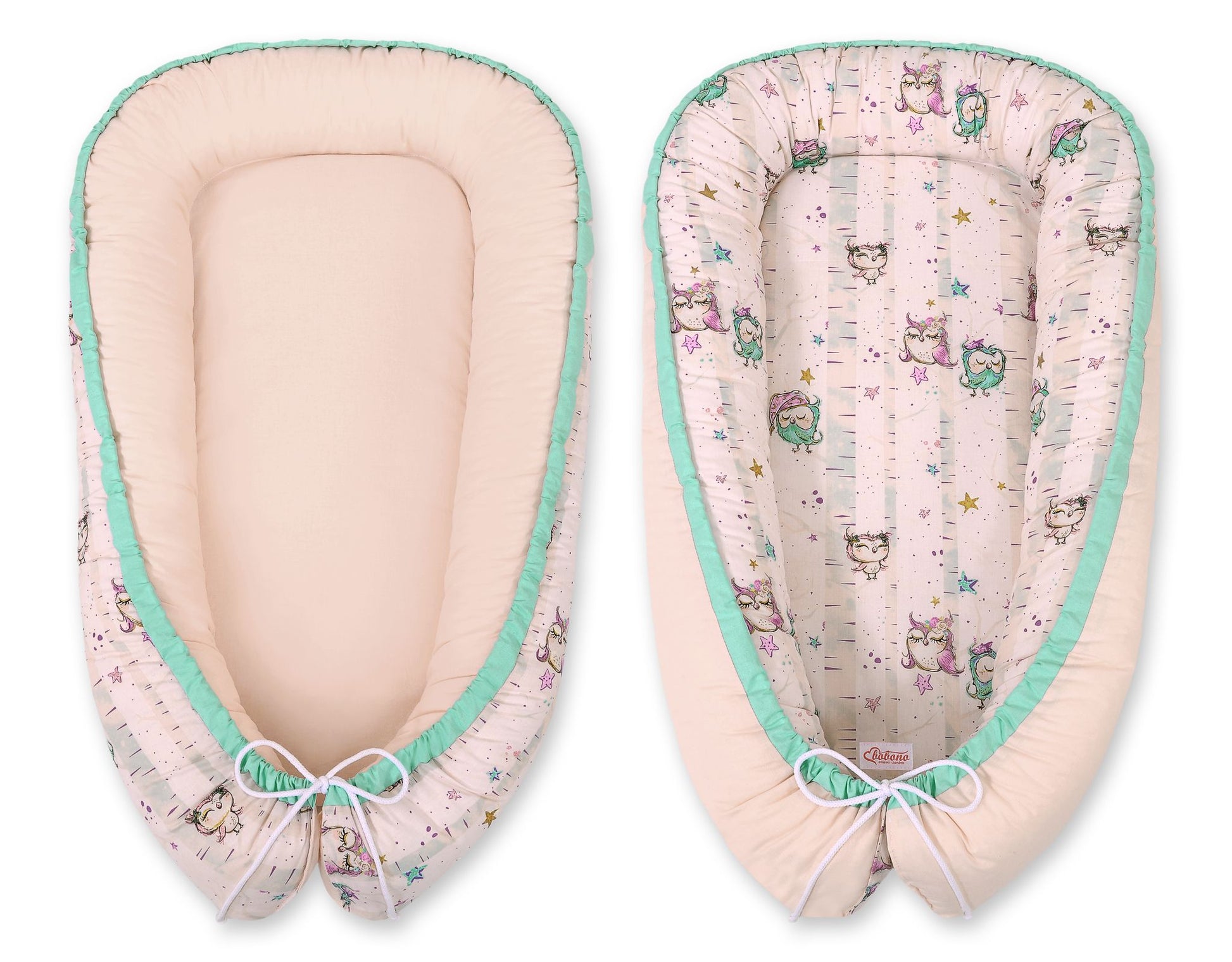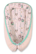 Baby Nest Dubbelzijdige Premium Cocoon voor Baby's BOBONO - Uilen Cream/Poederroze