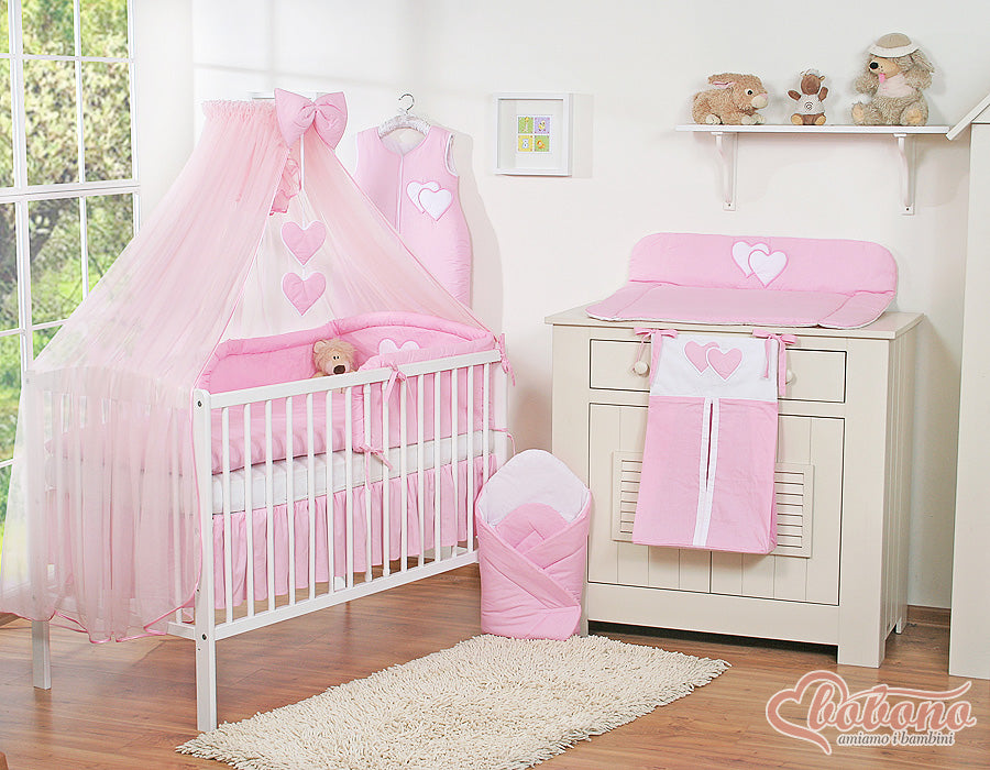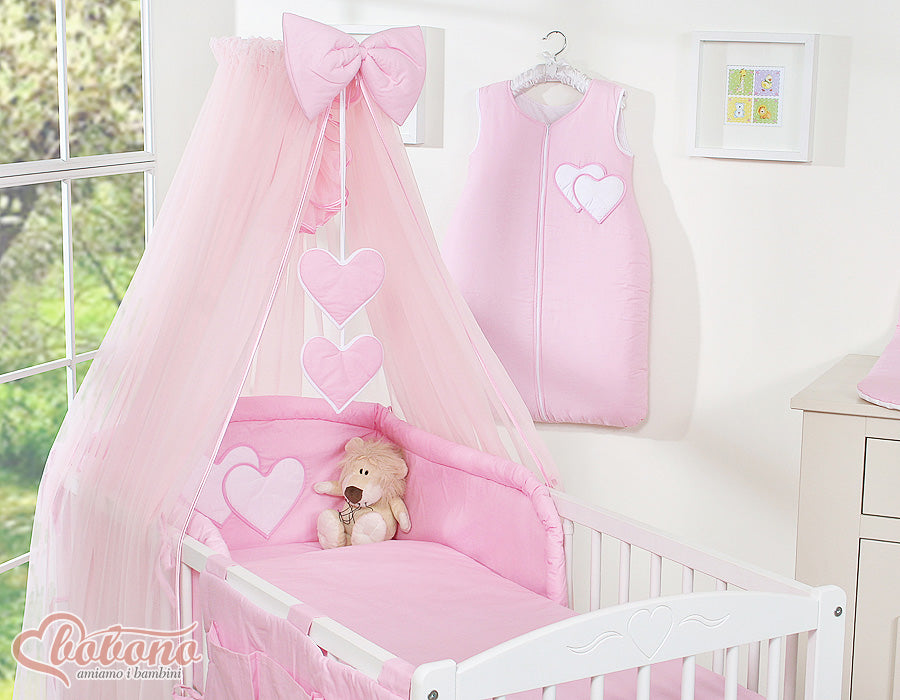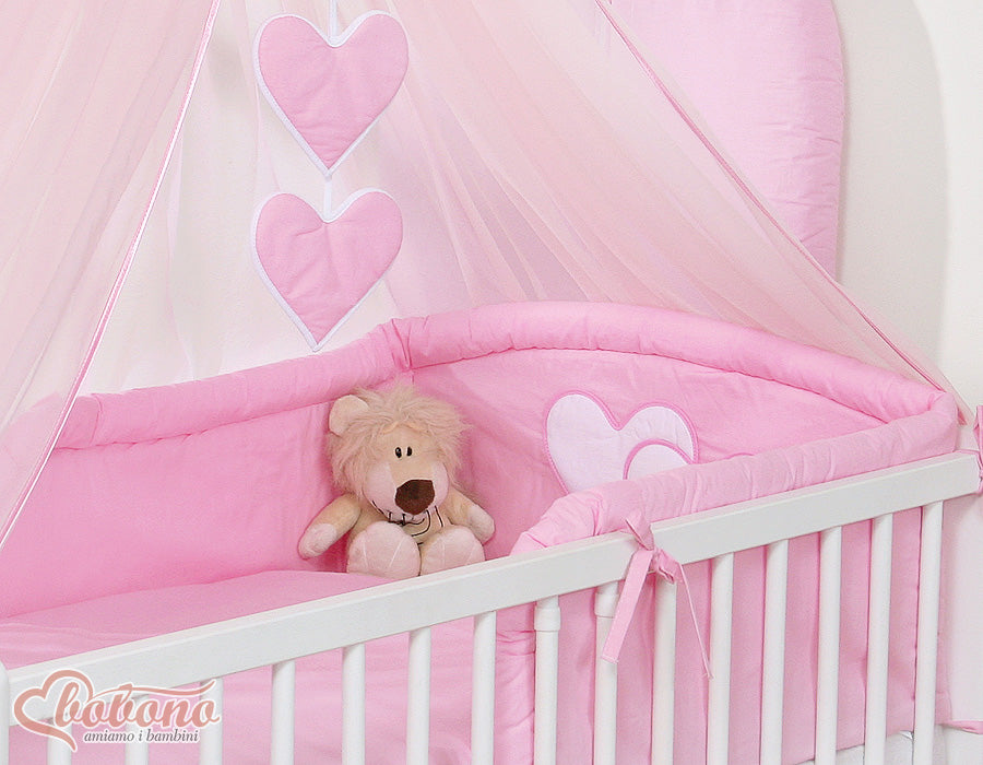 Babybeddengoed 5-delig met muskietennet – Hanging Hearts Roze