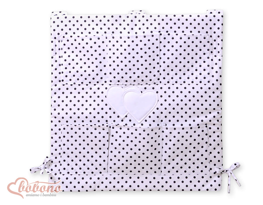 Babykamer organizer - wieg opbergzak - 6 ruime vakken, katoen, zwart-wit hartjesprint
