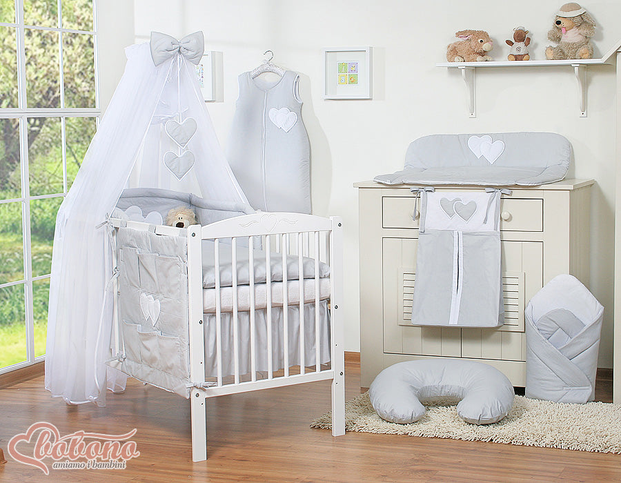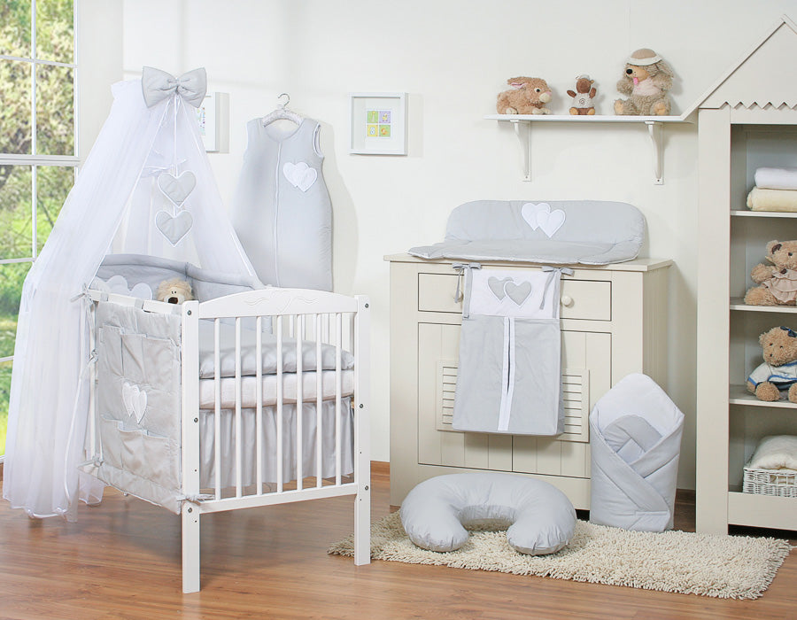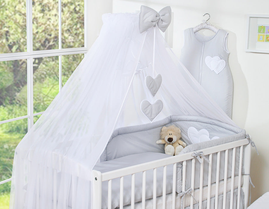 Babylaken 5-delige Set met Klamboe - Hanging Hearts Grijs