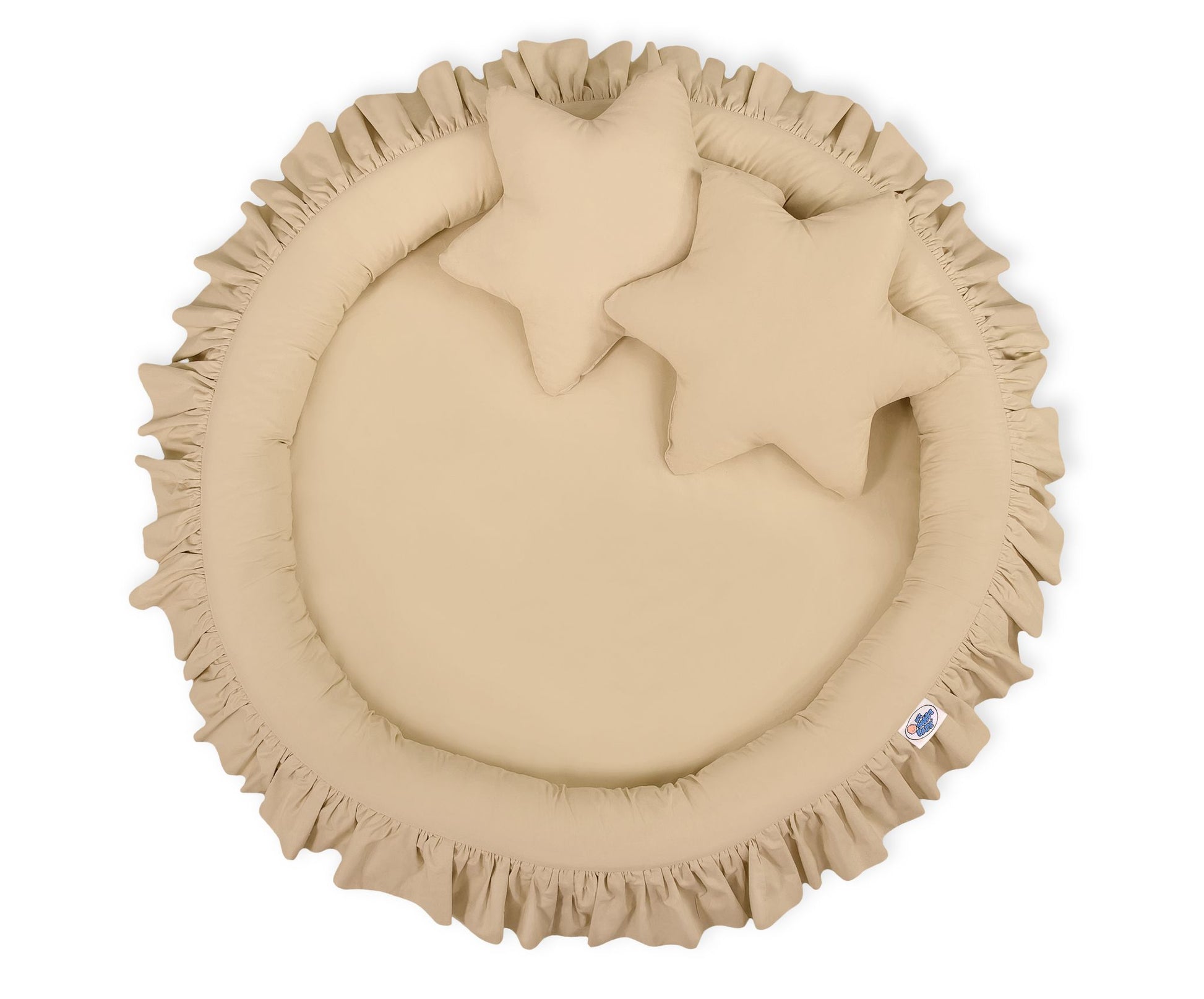 Een charmant en functioneel nest met een elegante volant, ideaal om in te spelen of te rusten. Dit nest biedt vanaf de eerste levensdagen een veilige en comfortabele plek voor je baby. De zachte randen zorgen voor extra veiligheid en maken het perfect als speelplek waar veel speelgoed een plekje vindt.