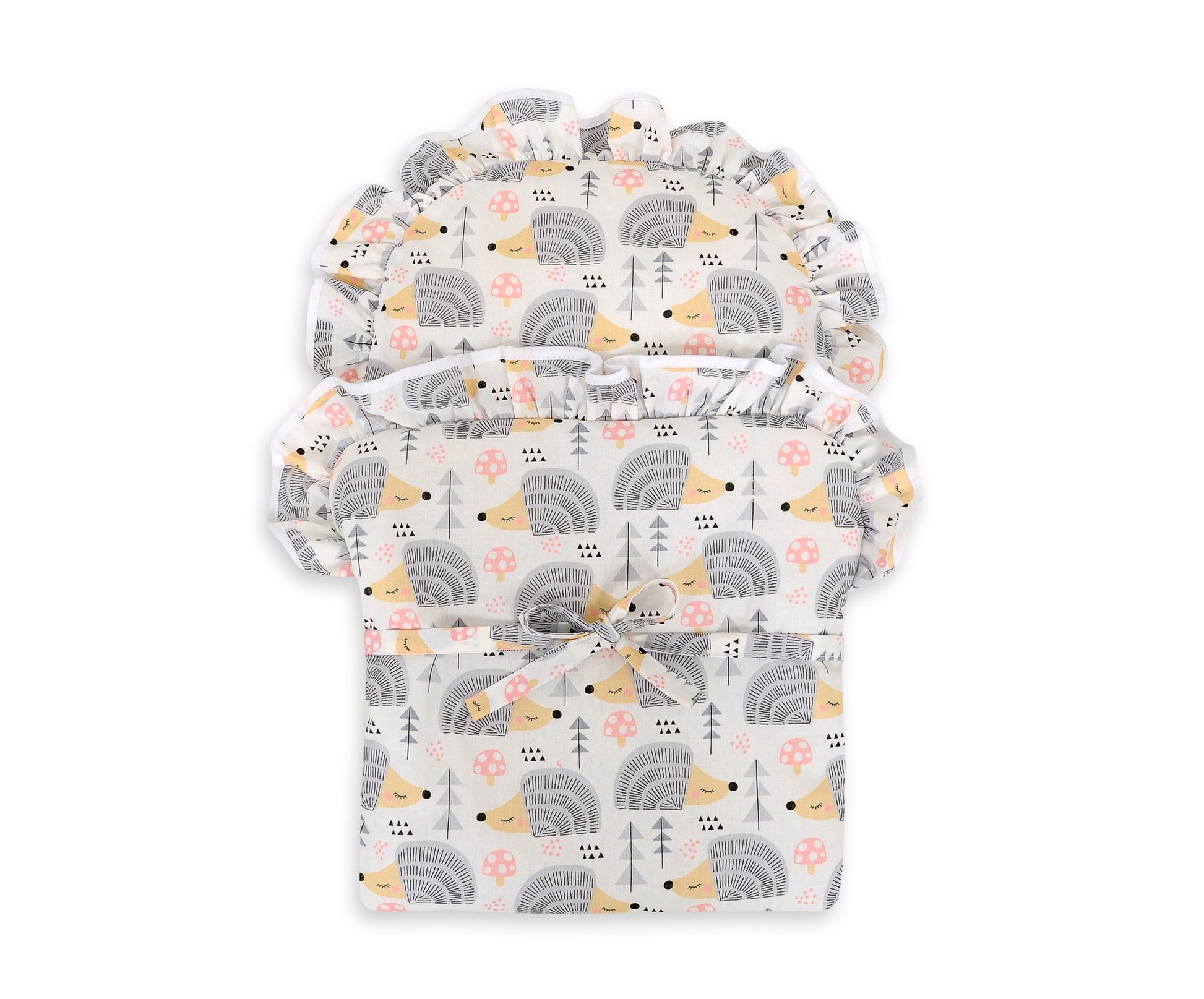 Babypop inbakerdoek – poppendeken – grijs egelmotief, handgemaakt & hypoallergeen katoen