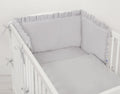 Universele babyschaalbescherming met decoratieve volant, perfect voor het beschermen van je kleintje tegen de harde spijlen van het ledikant. De hoge, elastische beschermrand is voorzien van extra stiksels, waardoor hij geschikt is voor zowel 120x60 cm als 140x70 cm ledikanten.