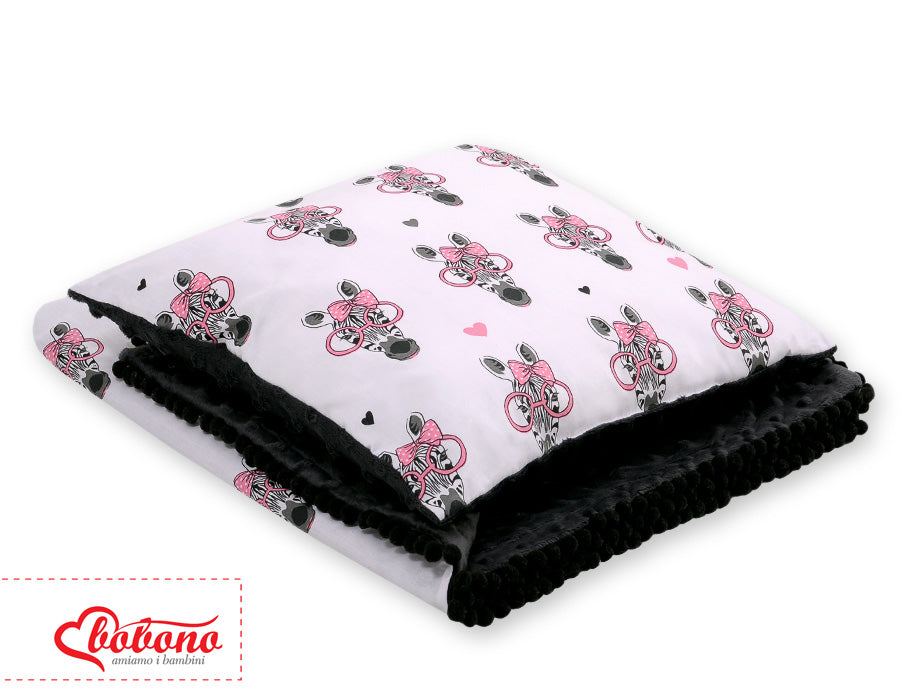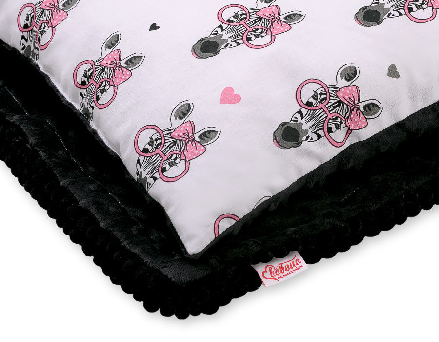 Babyset dubbelzijdige deken + kussen - Minky pluche - extra zacht & warm - roze zebra’s
