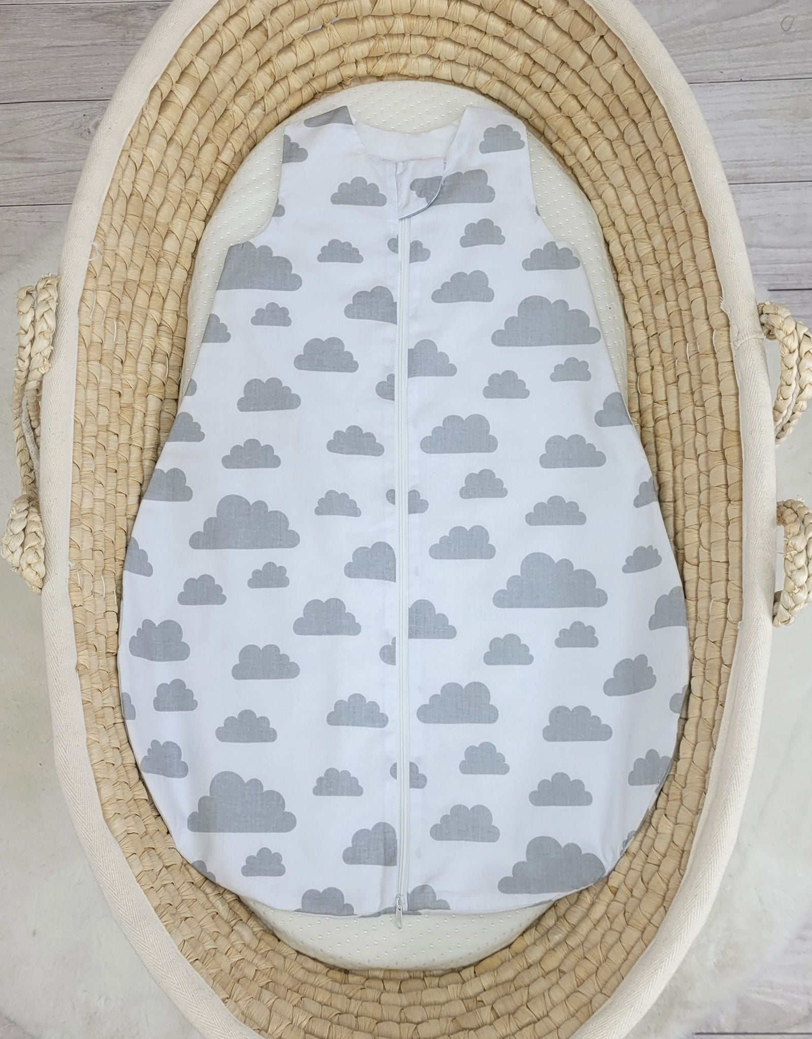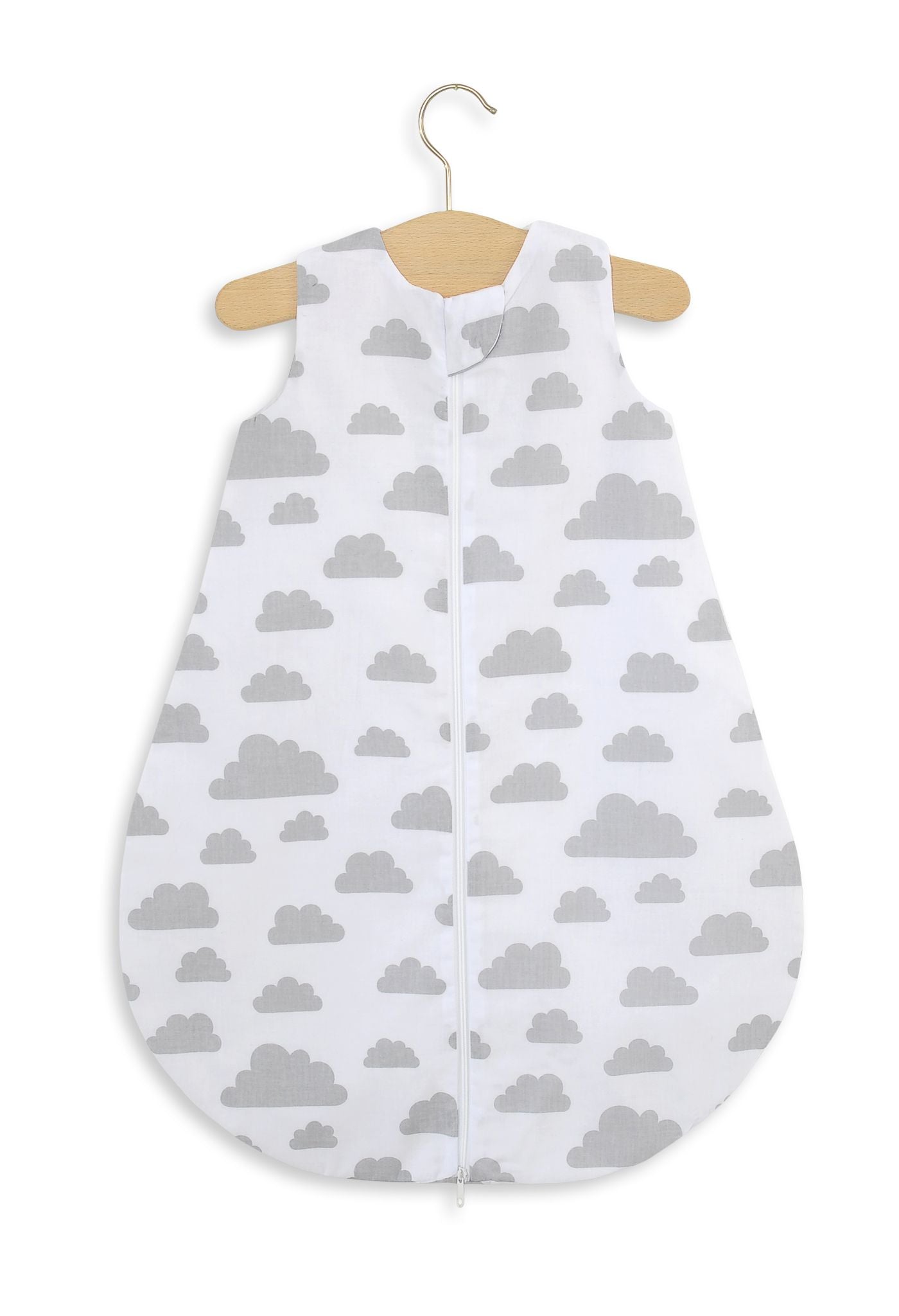 Babyslaapzak katoen, zomer slaapzak, ademend & zacht - TOG 1.0 - 0-6 maanden - grijze wolken