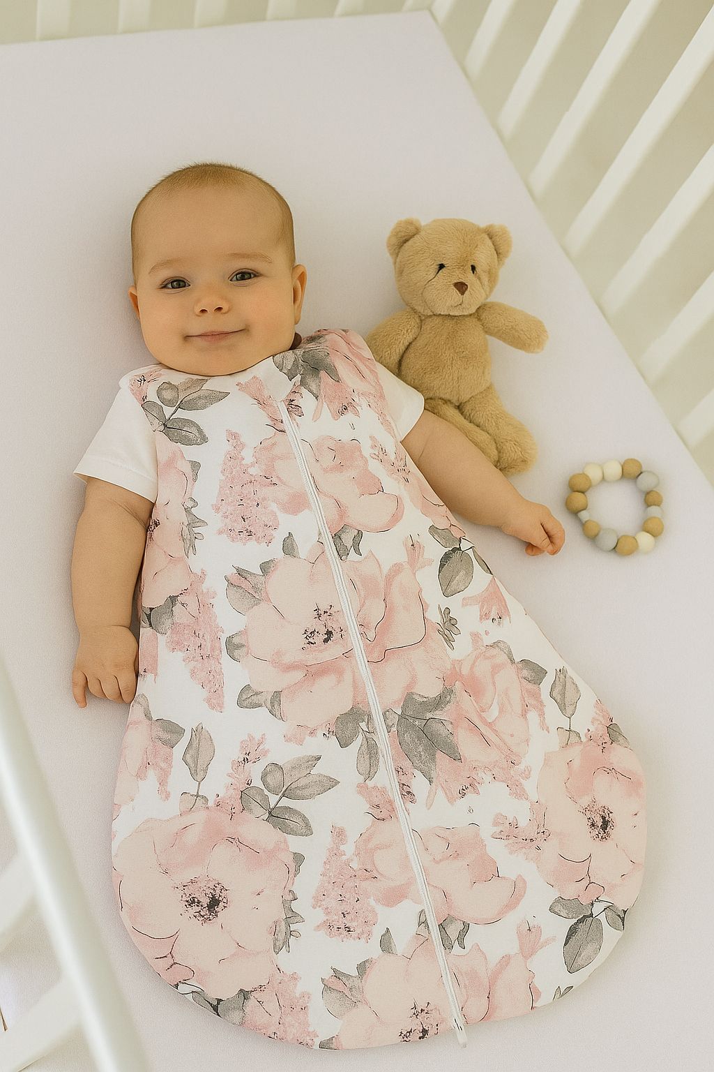Babyslaapzak, slaapzakje, huidvriendelijk katoen voor zomer 0-6 mnd, TOG 1.0, sepia rozen