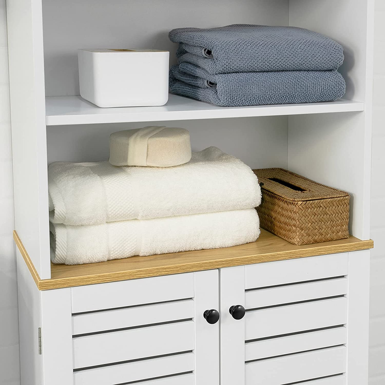 - De moderne design hoge badkamerkast heeft 3 planken en 1 kast met interne verstelbare plank biedt voldoende opbergruimte.