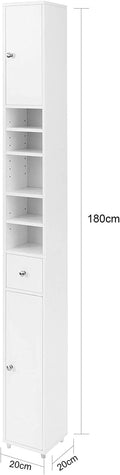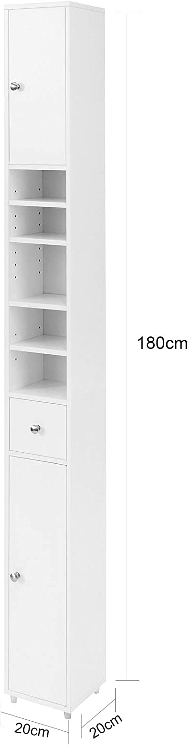 Details: Met deze hoge kast wordt het maximaliseren van de ruimte in uw badkamer eenvoudiger. Hij heeft 1 lade, 5 opbergvakken en 2 kasten met verstelbare planken aan de binnenkant, zodat je voldoende opbergruimte hebt voor al je badkamerbenodigdheden. Er zijn 4 extern verstelbare planken en 2 intern verstelbare planken, in totaal 6 verstelbare planken, zodat u de hoogte kunt aanpassen aan uw behoeften of eenvoudigweg de planken kunt verwijderen. Wordt geleverd met een anti-kantelsysteem, wat zorgt voor grote stabiliteit en veiligheid. Ruimtebesparende opbergoplossing die ervoor zorgt dat uw badkamer netjes en georganiseerd blijft. Modieuze uitstraling, waardoor hij perfect past bij elke interieurstijl. Deze kast biedt u maximale opbergruimte, neemt tegelijkertijd een minimale hoeveelheid ruimte in beslag en is ideaal voor badkamer, woonkamer, slaapkamer, enz. Productdetails Materiaal: MDF. Kleur: Wit. Afmetingen: B20 x D20 x H180cm. Gewicht: 12 kg. Draagvermogen: 45 kg. Het artikel wordt geleverd in een platte verpakking en vereist zelfmontage. Gedetailleerde instructies meegeleverd. De decoratieve elementen zijn niet bij de levering inbegrepen. Neem per e-mail contact met ons op als u vragen heeft. We zullen zo snel mogelijk antwoorden!