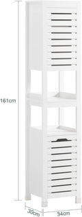 - Gemaakt van hoogwaardig MDF in witte lak. Afmetingen: B34 x D30 x H161cm. Gewicht: 20,3 kg. Draagvermogen: 45 kg. Afmetingen verpakking: L90 x B37 x H22cm.