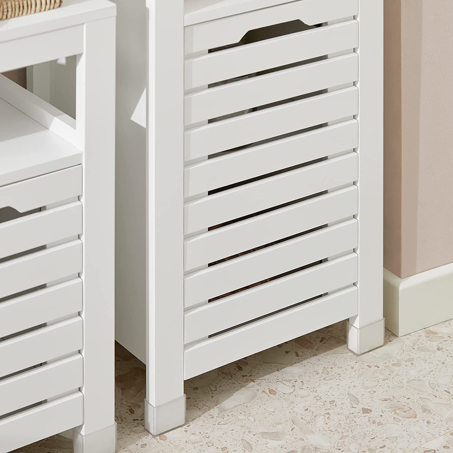 - Wordt geleverd met siliconen voethoezen, die deze kast niet alleen beschermen tegen vocht in de badkamer, maar ook uw vloer effectief beschermen tegen krassen.