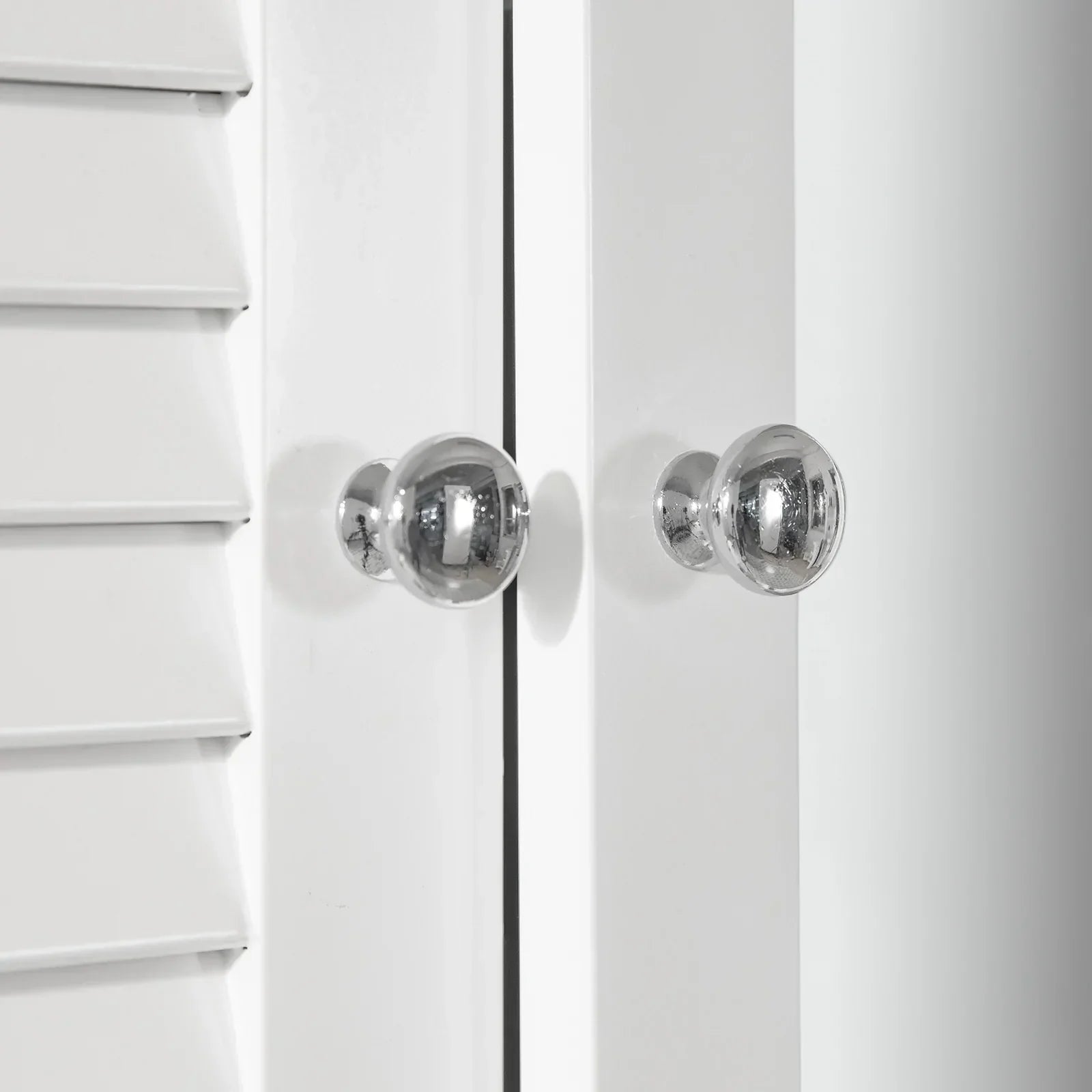 - Het heeft één spiegeldeur met twee interne verstelbare planken en één sluiterdeur met één interne verstelbare plank.