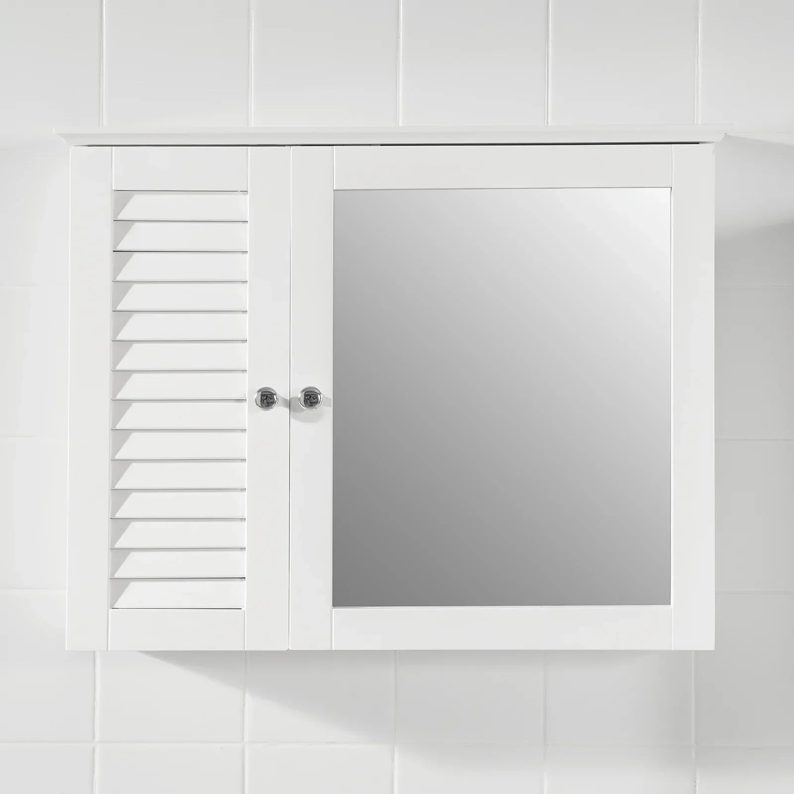 Badkamer Wandspiegelkast - Wandgemonteerde badkamerkast - Gespiegelde opbergkast - Wit