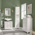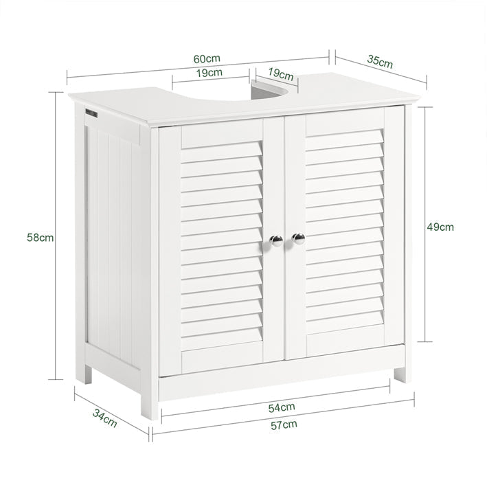 Badkamer Wastafel Onderkast - Opbergkast - Witte MDF Kast - Schimmelpreventie - Decoratieve Lattendeur - 57cm x 58cm x 35cm