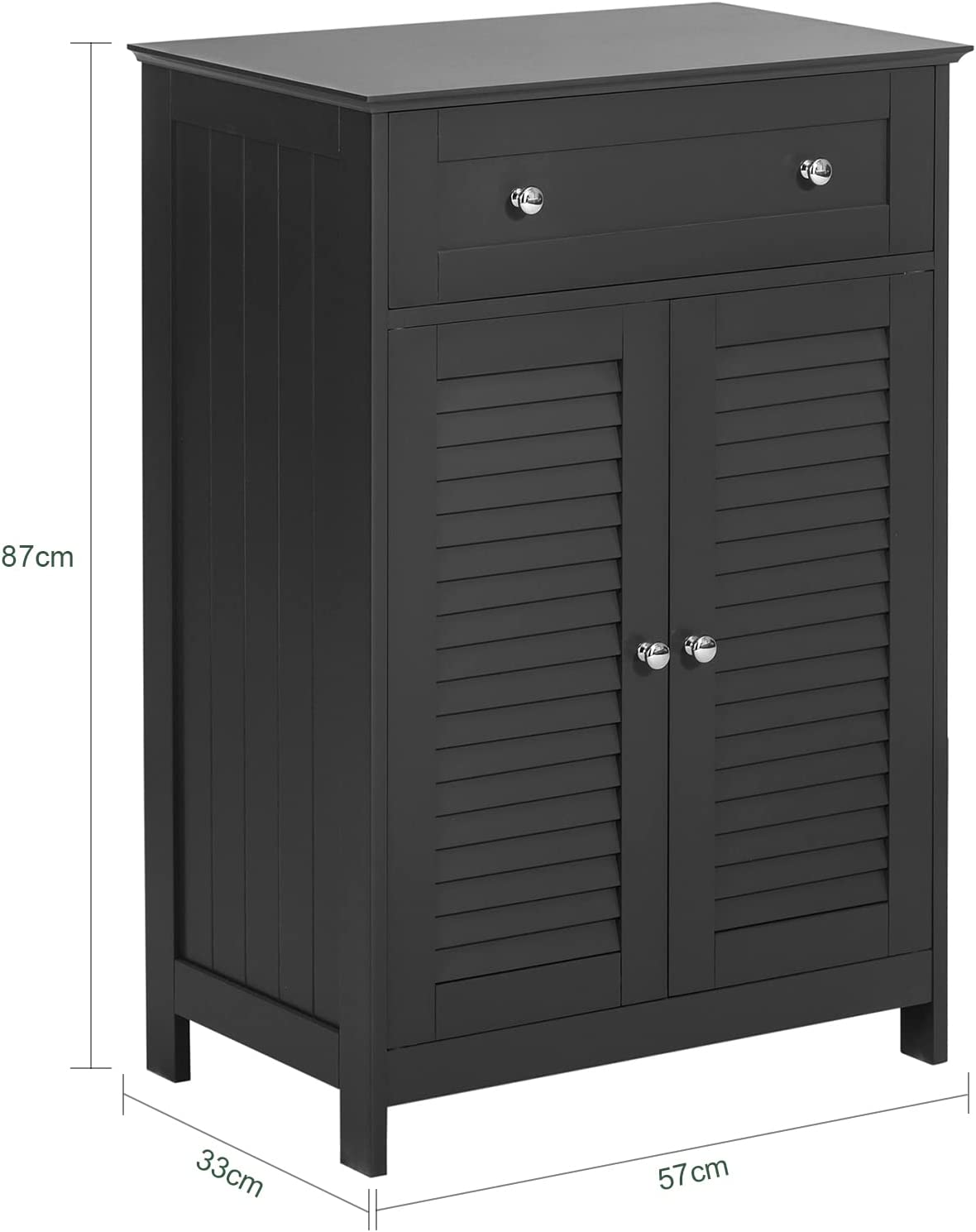 Badkamerkast - Badkameropberger - Kastkast met lade en dubbele sluiterdeuren - Donkergrijs