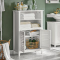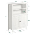 Details: Witte vloerstaande badkameropbergkast past perfect bij uw moderne of traditionele inrichting. Hij heeft 2 planken en 1 kast met een verstelbare interne plank, zodat je voldoende opbergruimte hebt voor al je badkamerbenodigdheden. Gemaakt van hoogwaardig MDF in witte lak. De verstelbare interne plank is gemaakt van spaanplaat. Ruimtebesparende opbergoplossing die ervoor zorgt dat uw badkamer netjes en georganiseerd blijft. Productdetails Materiaal: MDF. Afmetingen: B60 x D26 x H90cm. Gewicht: 12 kg. Draagvermogen: 45 kg. Het artikel wordt geleverd in een platte verpakking en vereist zelfmontage. Gedetailleerde instructies meegeleverd. De decoratieve elementen zijn niet bij de levering inbegrepen. Als u vragen heeft, neem dan per e-mail contact met ons op, wij zullen zo snel mogelijk antwoorden!