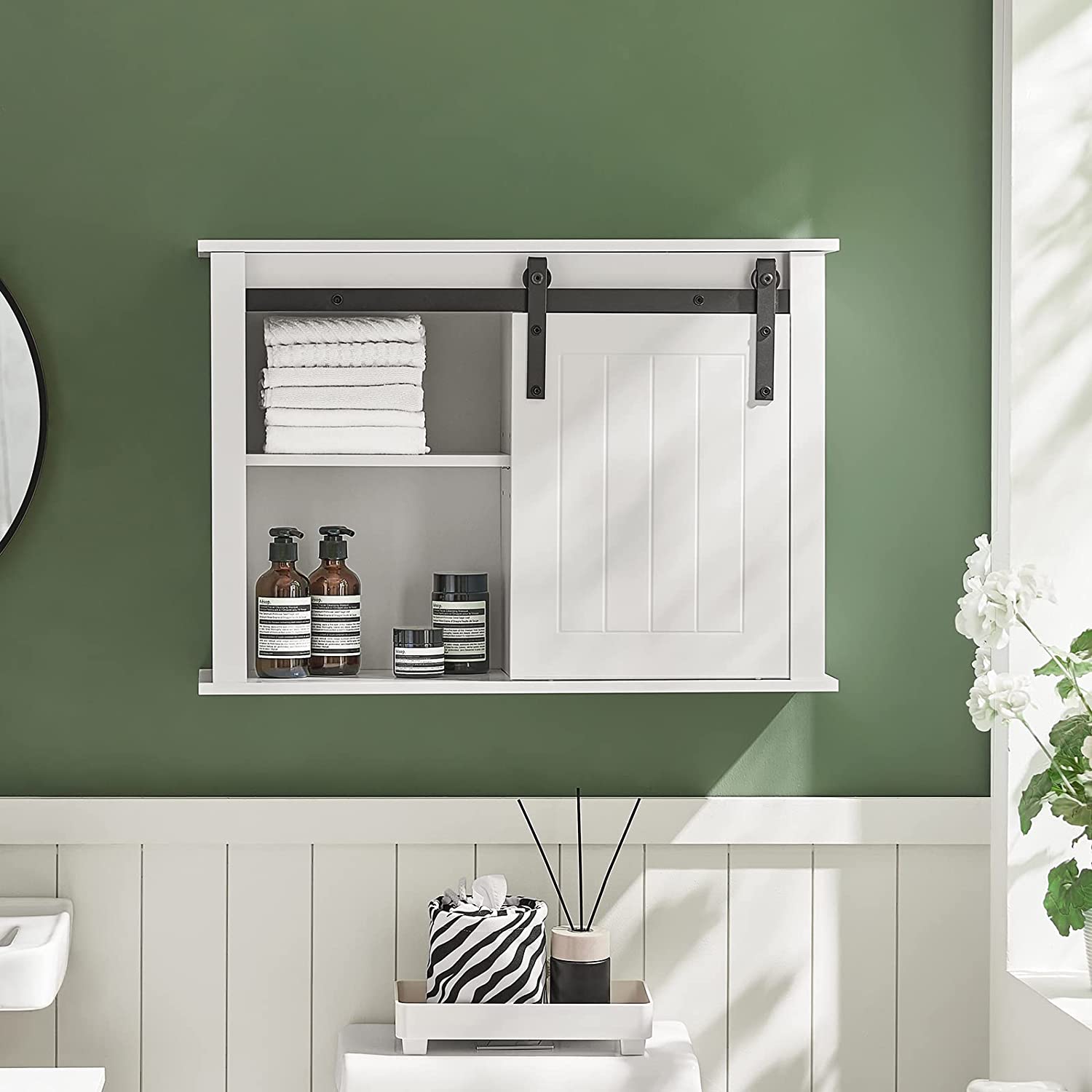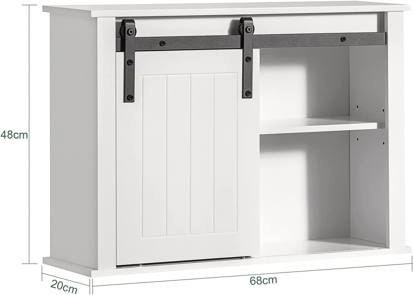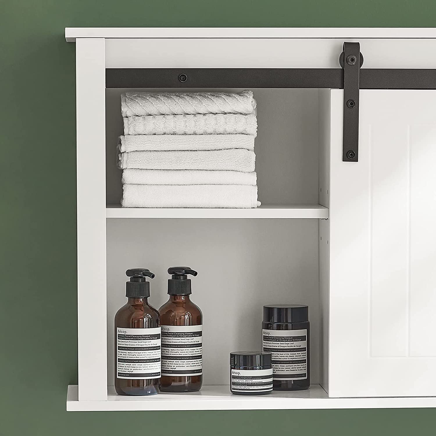 Badkamerkast met schuifdeur - Wandkast - Verstelbare Planken - MDF en Metaal - 68cm x 48cm x 20cm