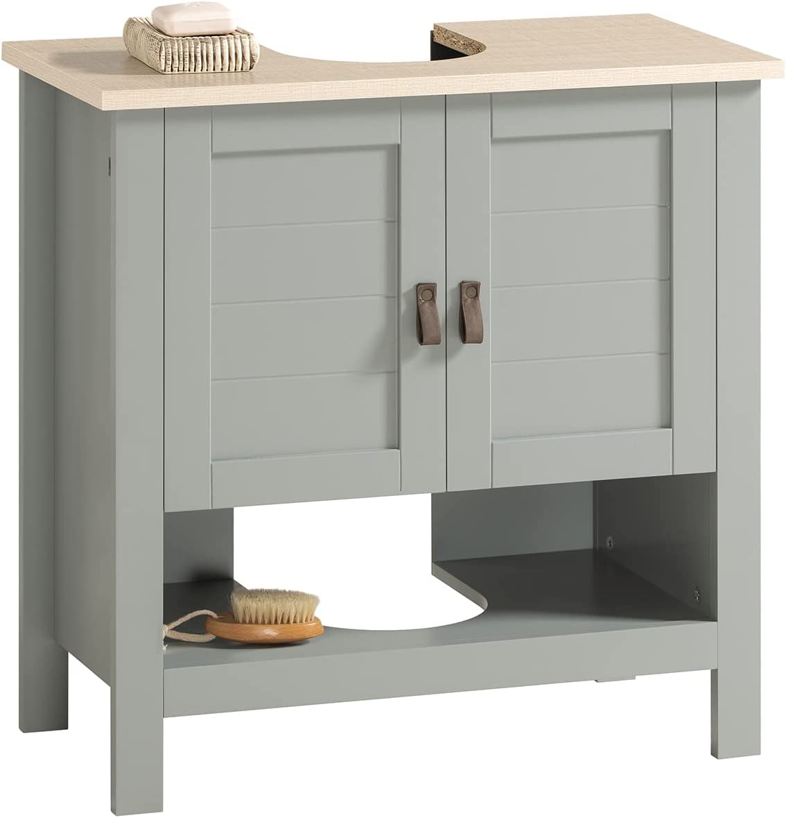 Badkamerkast voor onder de wastafel - Opbergkast met dubbele deuren - Geschikt voor wastafels op voetstuk