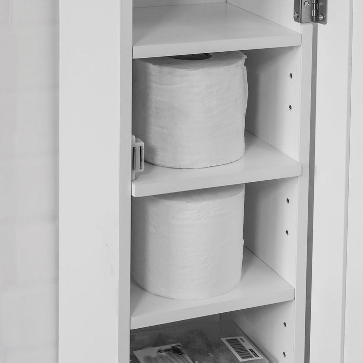 Dit praktische Badkamerkastje is ontworpen om toiletpapier, schoonmaakmiddelen of een toiletborstel efficiënt op te bergen. Het strakke, ruimtebesparende ontwerp maakt hem perfect voor kleine badkamers, terwijl de verstelbare planken aanpasbare opbergoplossingen bieden.