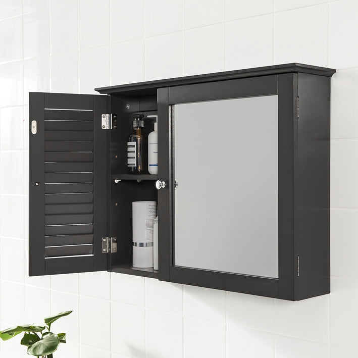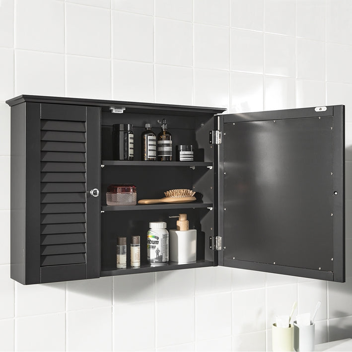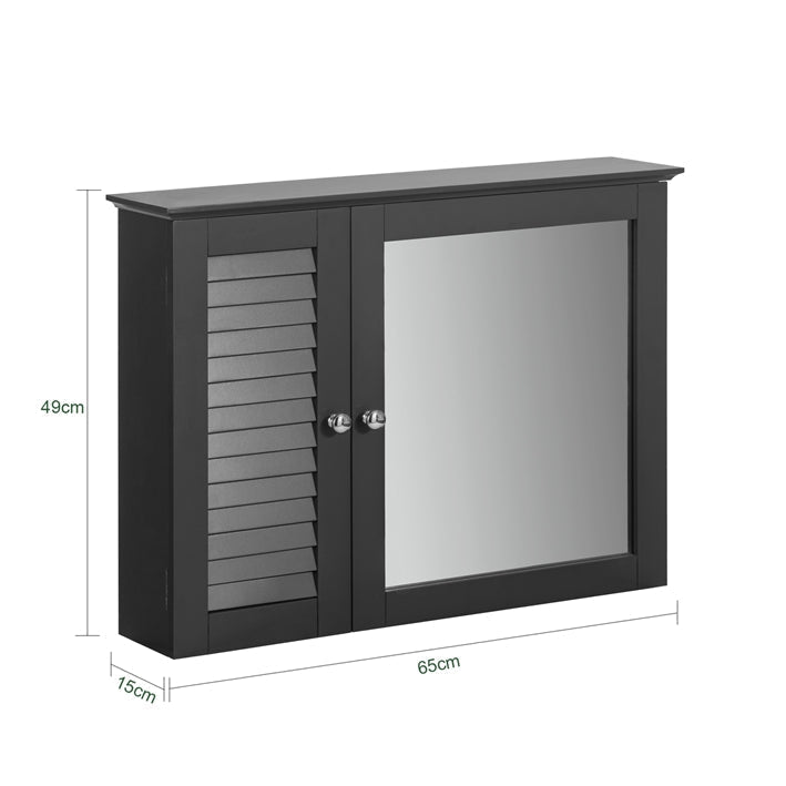 Badkamerspiegelkast - Wandkast met spiegeldeur - Ruimtebesparende opslag - Verstelbare planken, schimmelpreventie, luchtdoorlatende lamellen - MDF-constructie - 65 cm x 49 cm x 15 cm