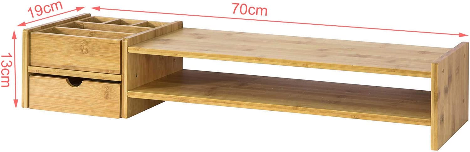 Bamboe Monitorstandaard - Computerscherm - Monitorstandaard - Monitor Riser Bureau-organizer 2 Planken 2 Laden