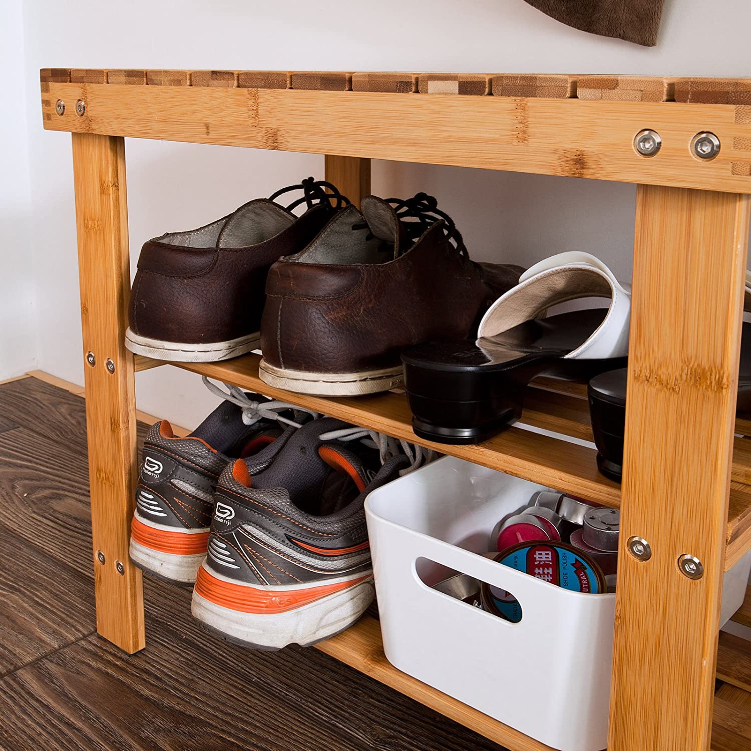 - Praktisch en decoratief schoenenrek, gemaakt van bamboe. Waterbestendig, kan ook in de badkamer worden gebruikt