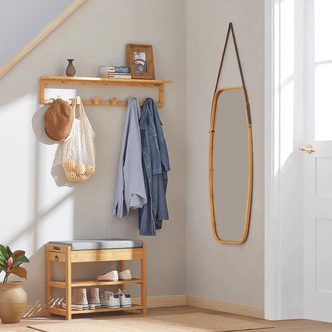 Bamboe Schoenenrek - Schoenenbank met opklapbaar bankje en zitkussen - Halschoen - Opbergbankorganizer met lade