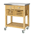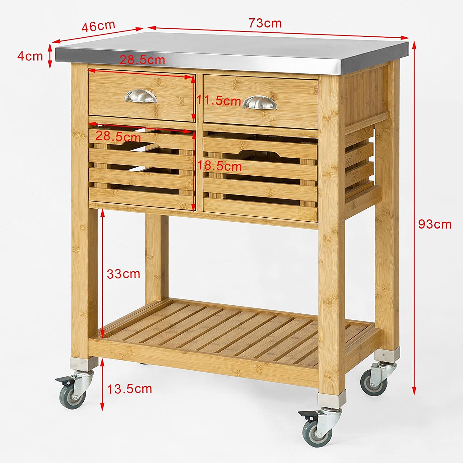 Bamboo Kitchen Serveerwagen - Opbergwagen met roestvrijstalen werkblad