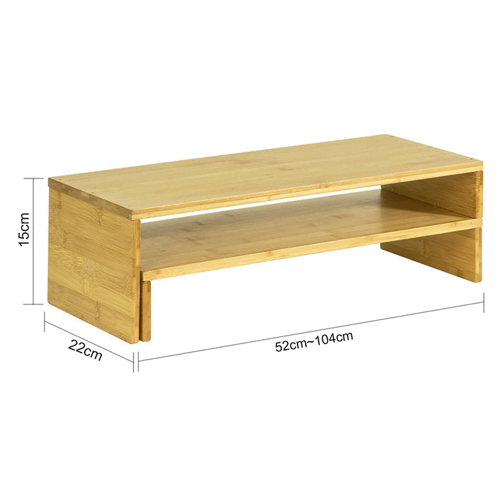 Bamboo Monitor Stand Riser - Bureauplank - Bureau-organizer - Verminder nekpijn - Verstelbaar - 52-104 cm x 15 cm x 22 cm