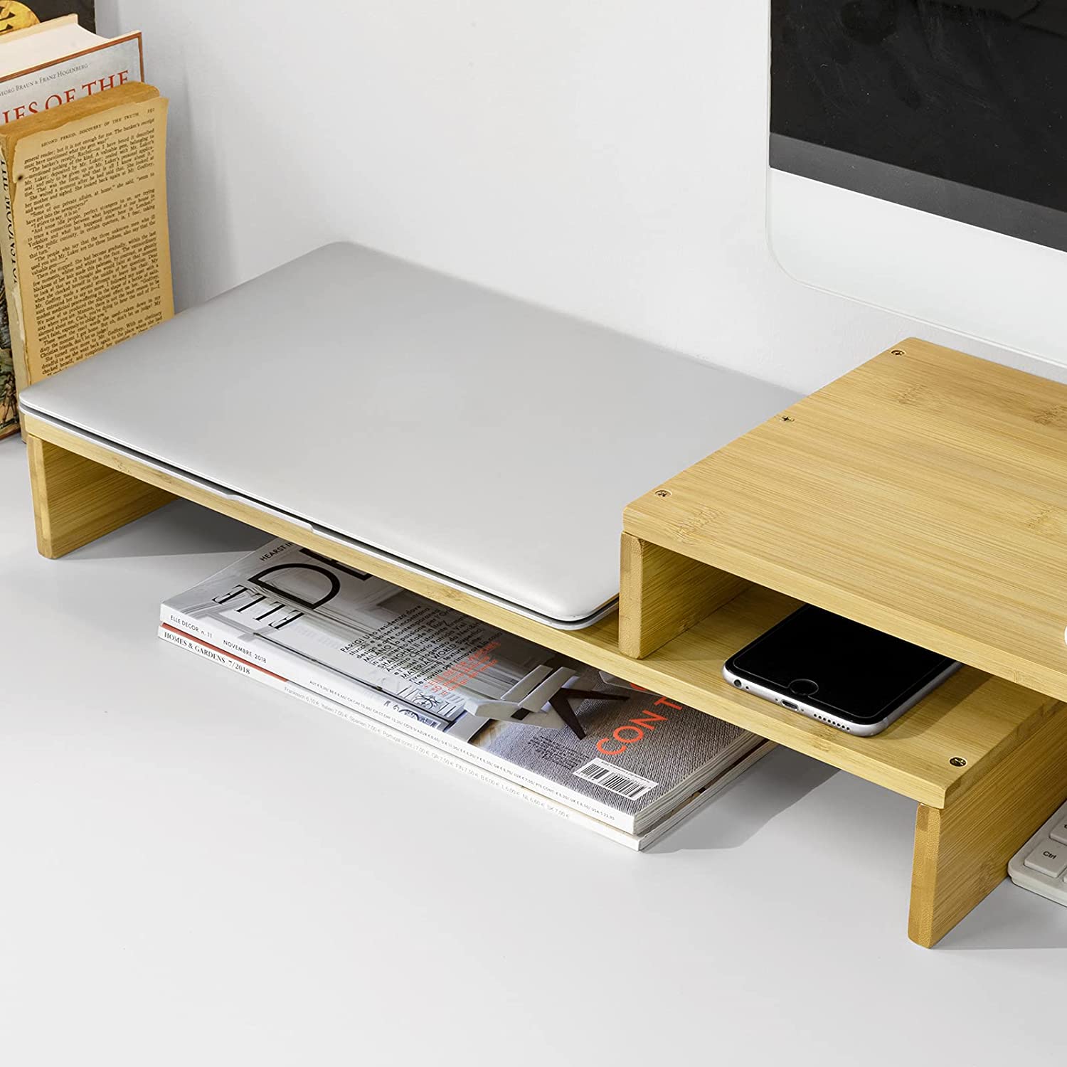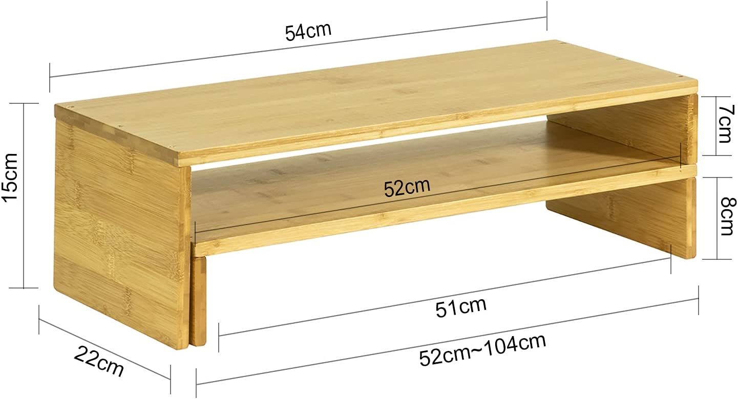 Bamboo Monitor Stand Riser - Bureauplank - Bureau-organizer - Verminder nekpijn - Verstelbaar - 52-104 cm x 15 cm x 22 cm