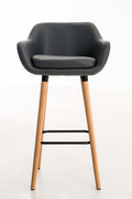 Deze stijlvolle barkruk geeft elke bar een extra boost van elegantie. De vorm is vergelijkbaar met een fauteuil en valt echt op qua design. Dankzij de rugleuning en comfortabele vormgeving kun je er urenlang op zitten. De zitting is bekleed met kunstleer en voorzien van een afneembaar kussen dat eenvoudig te reinigen is. Het klittenband houdt het kussen op zijn plek. De hoes van dit kussen kan makkelijk worden verwijderd en gewassen dankzij de ritssluiting. Het stabiele vierpotige frame van beukenhout heeft een subtiele metalen voetsteun waardoor het ontwerp compleet is.