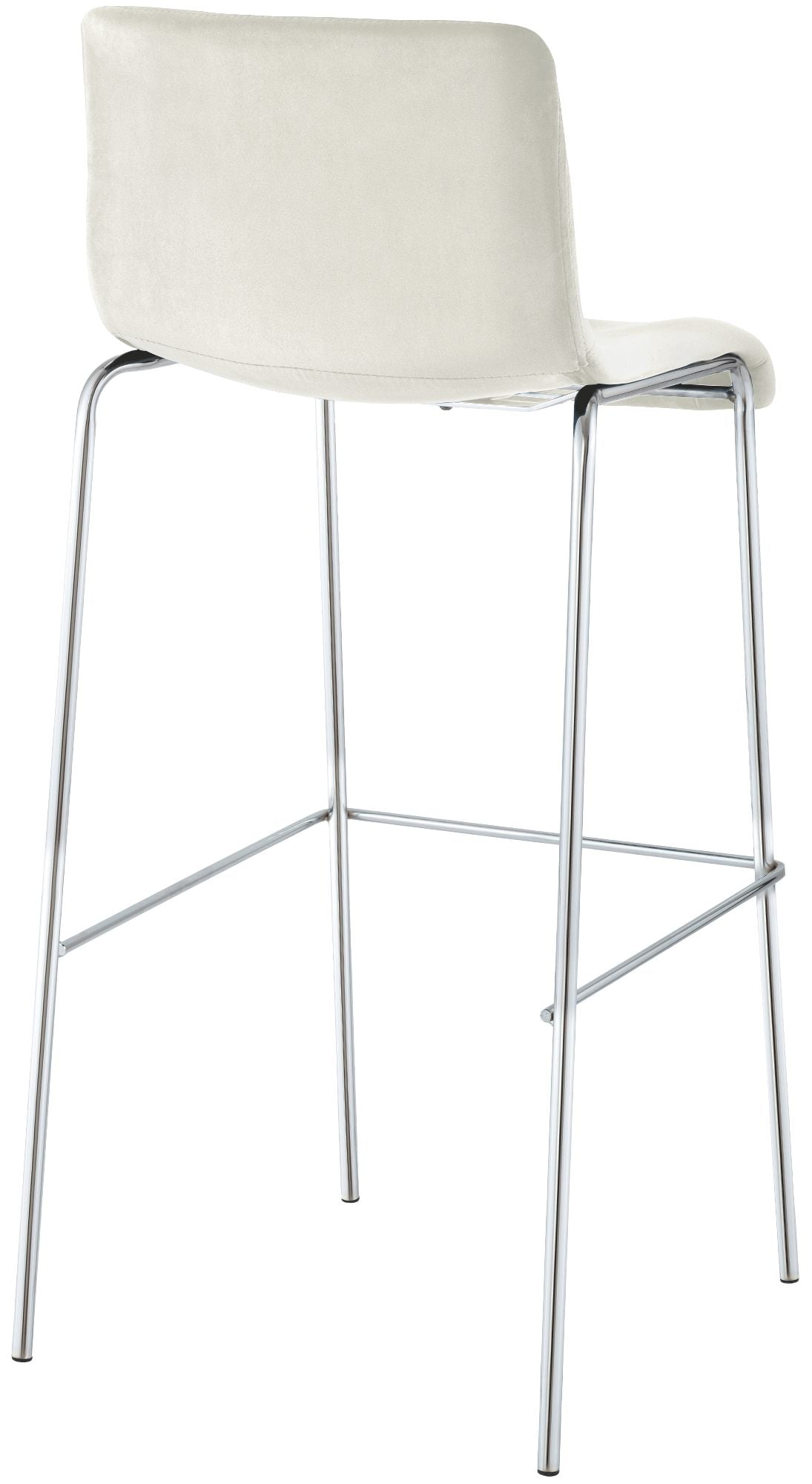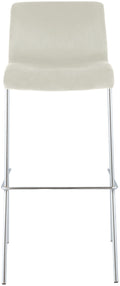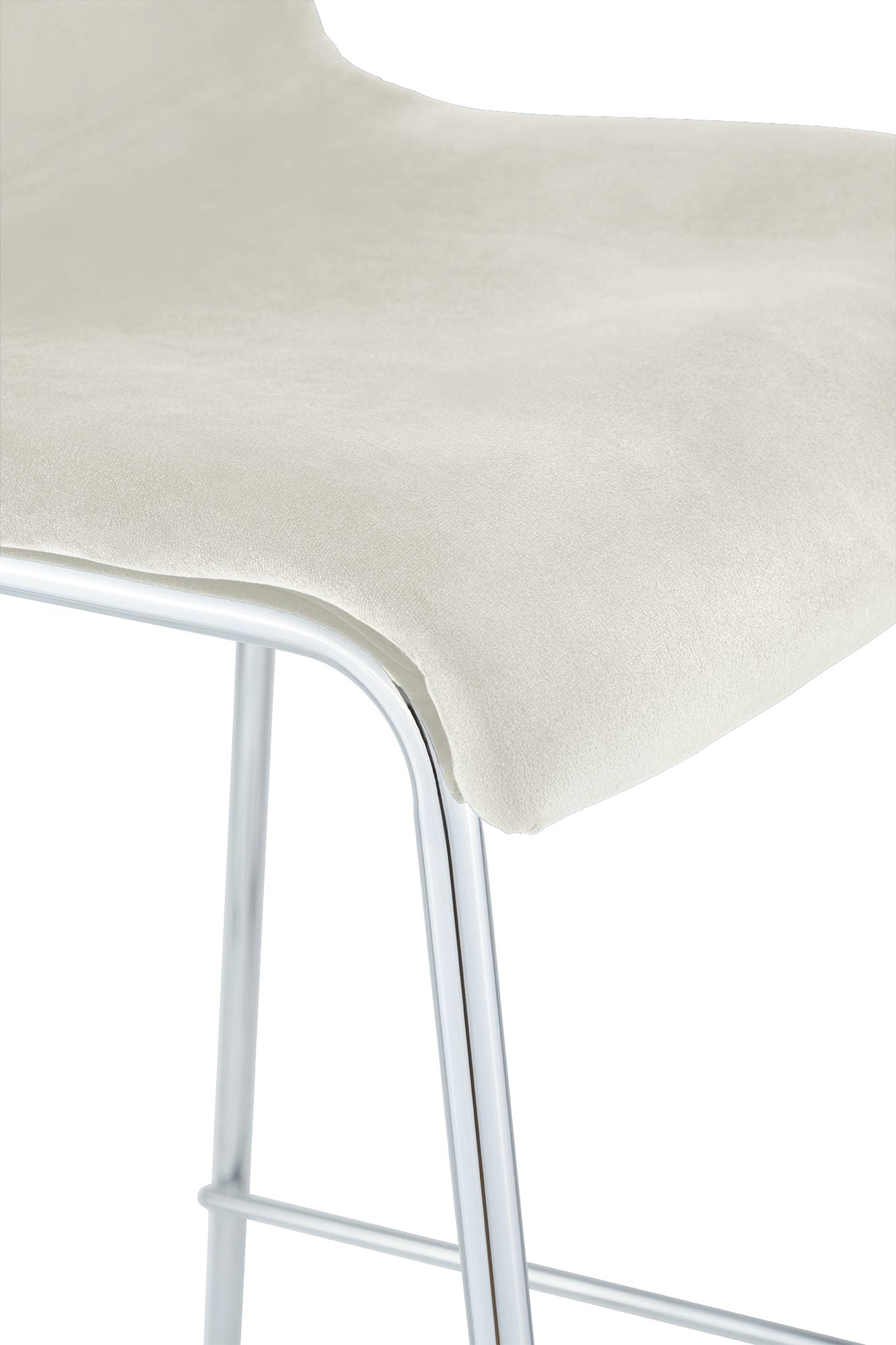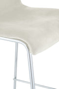 Barkruk van fluweel met vierpoots frame in chroomkleur, crème