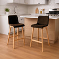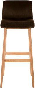 Barkruk van fluweel met houten vierpoots frame in natuurlijke look