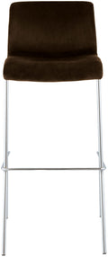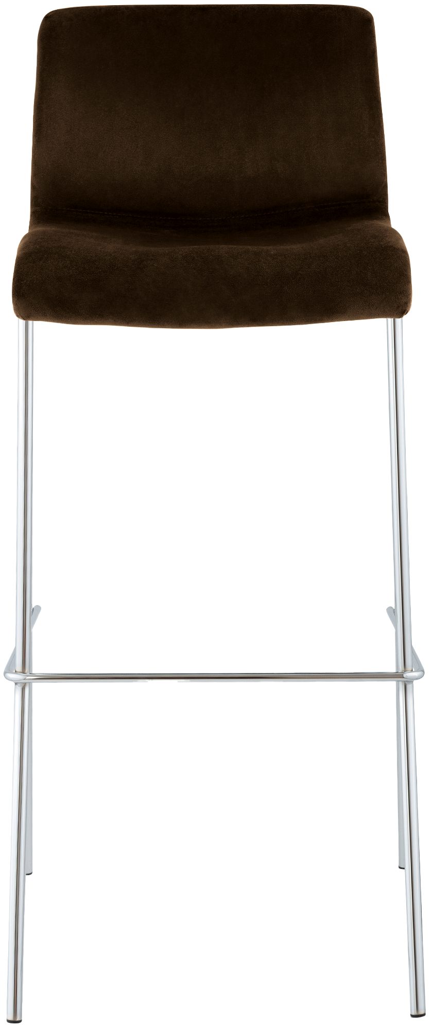 Barkruk van fluweel met vierpoots frame in chroomkleur, bruin