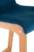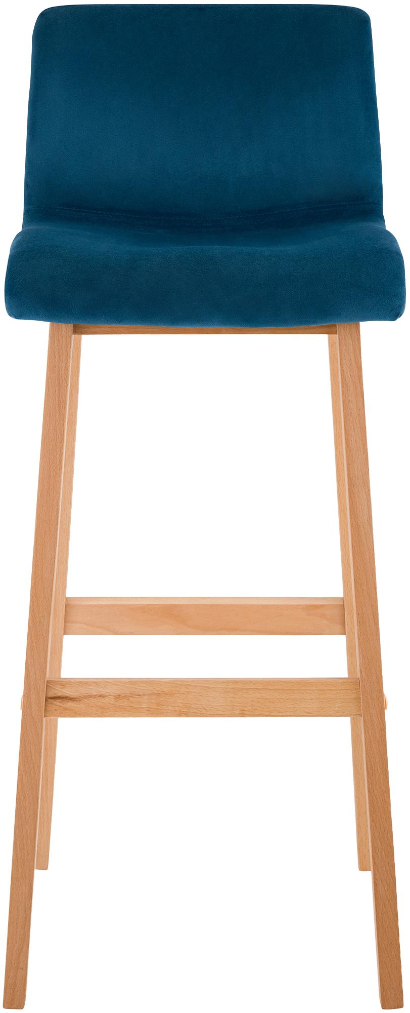 Moderne barkruk met fluwelen bekleding en beukenhouten vierpootsframe in blauw