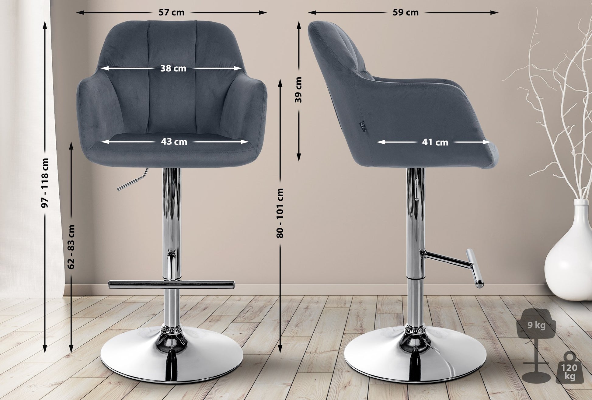 Barkruk fluweel donkergrijs, metaal in chroomoptiek