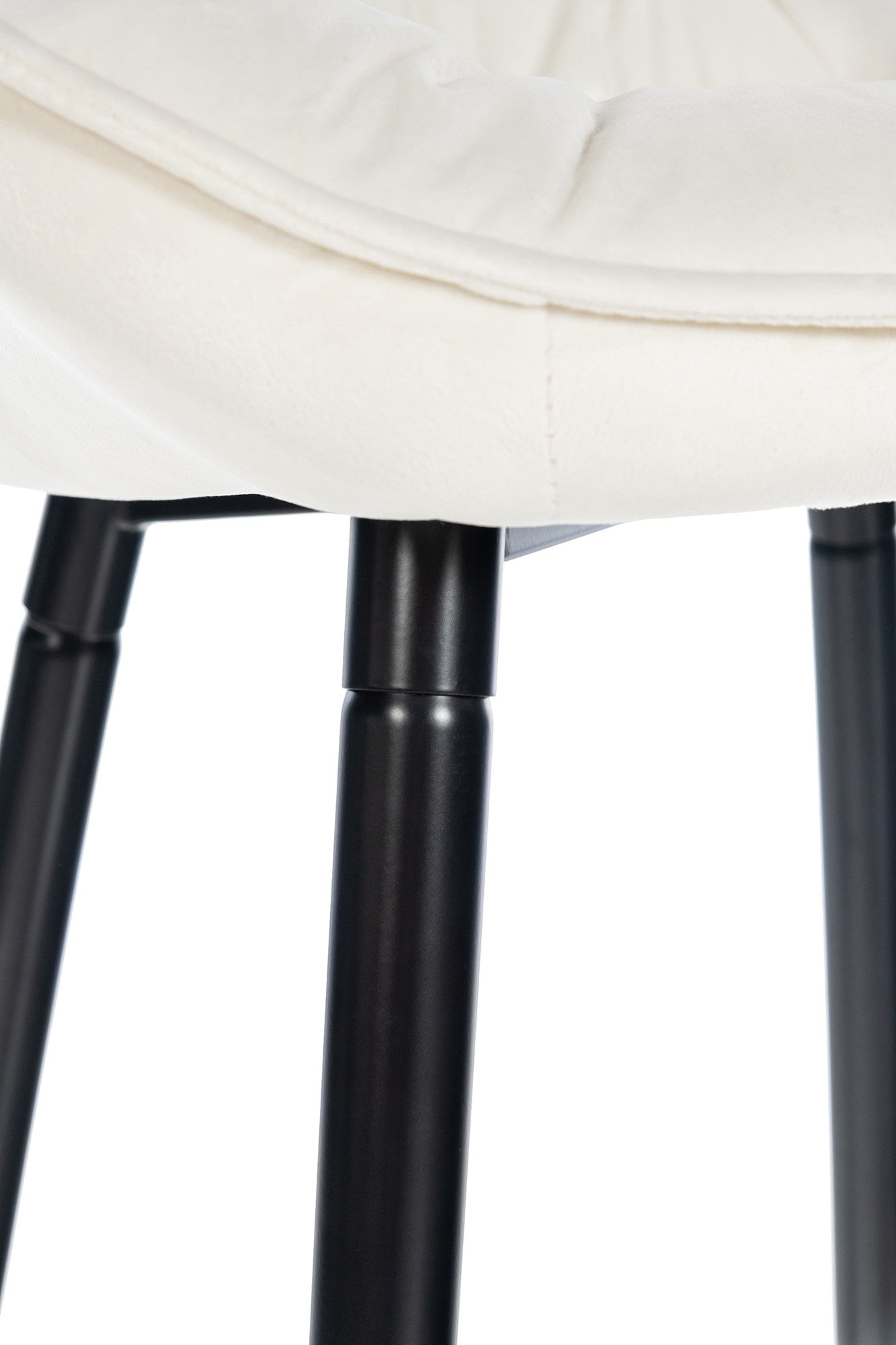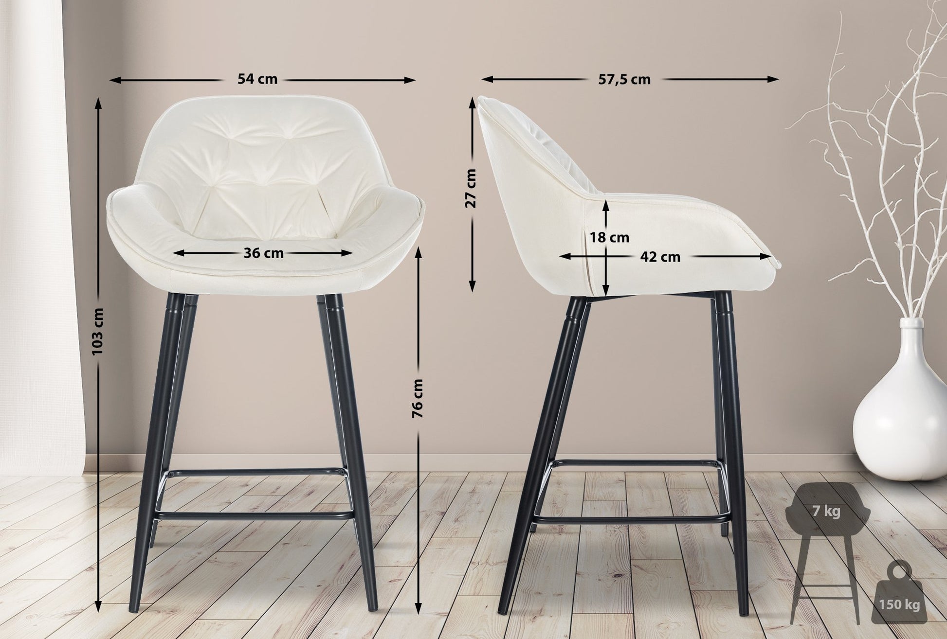 De kruk krijgt een elegante uitstraling door de combinatie van een matzwart frame en stijlvolle bekleding. Deze barkruk met doorgestikt fluwelen bekleding is beschikbaar in diverse kleuren.