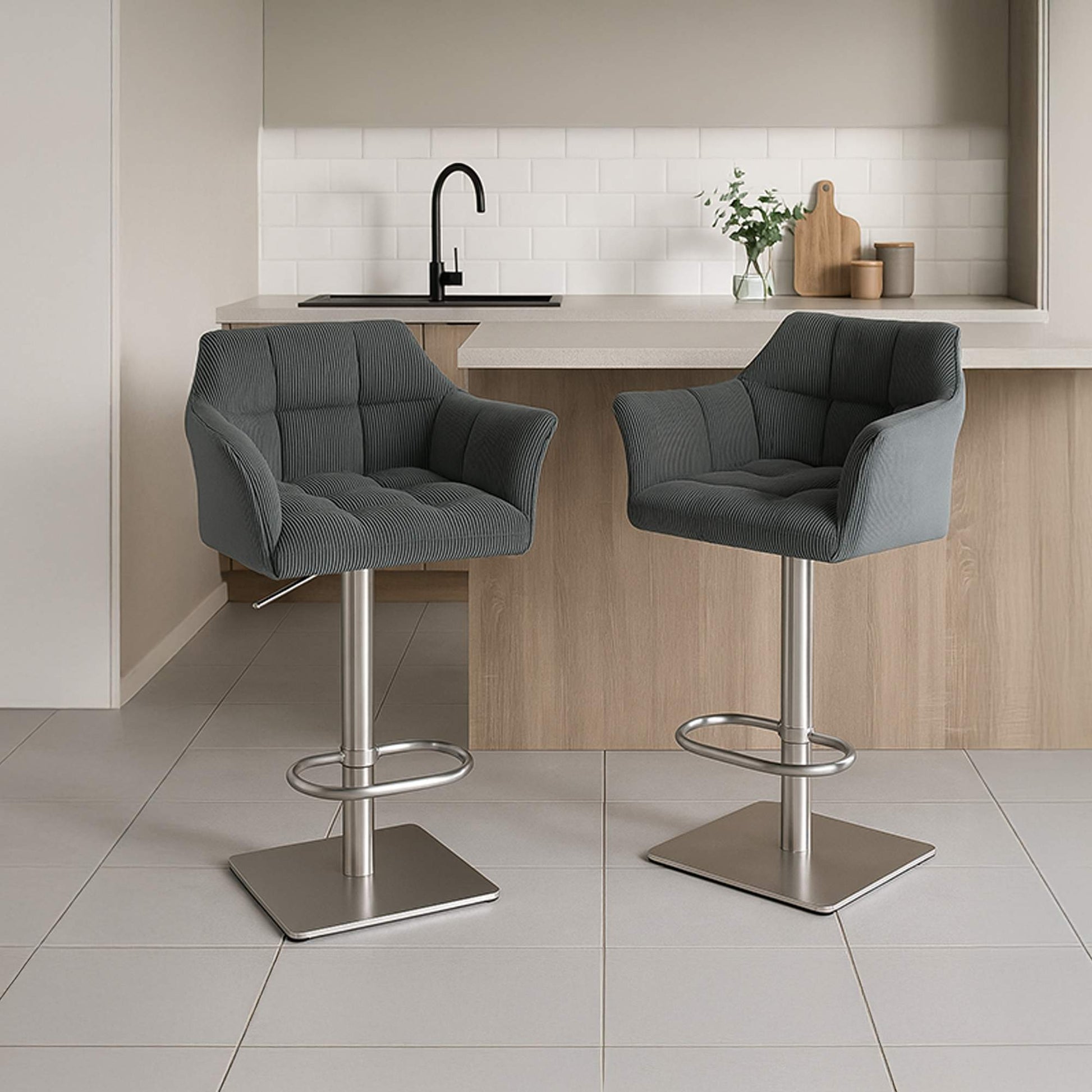 Barkruk in Grijs met Roestvrij Stalen Accenten
