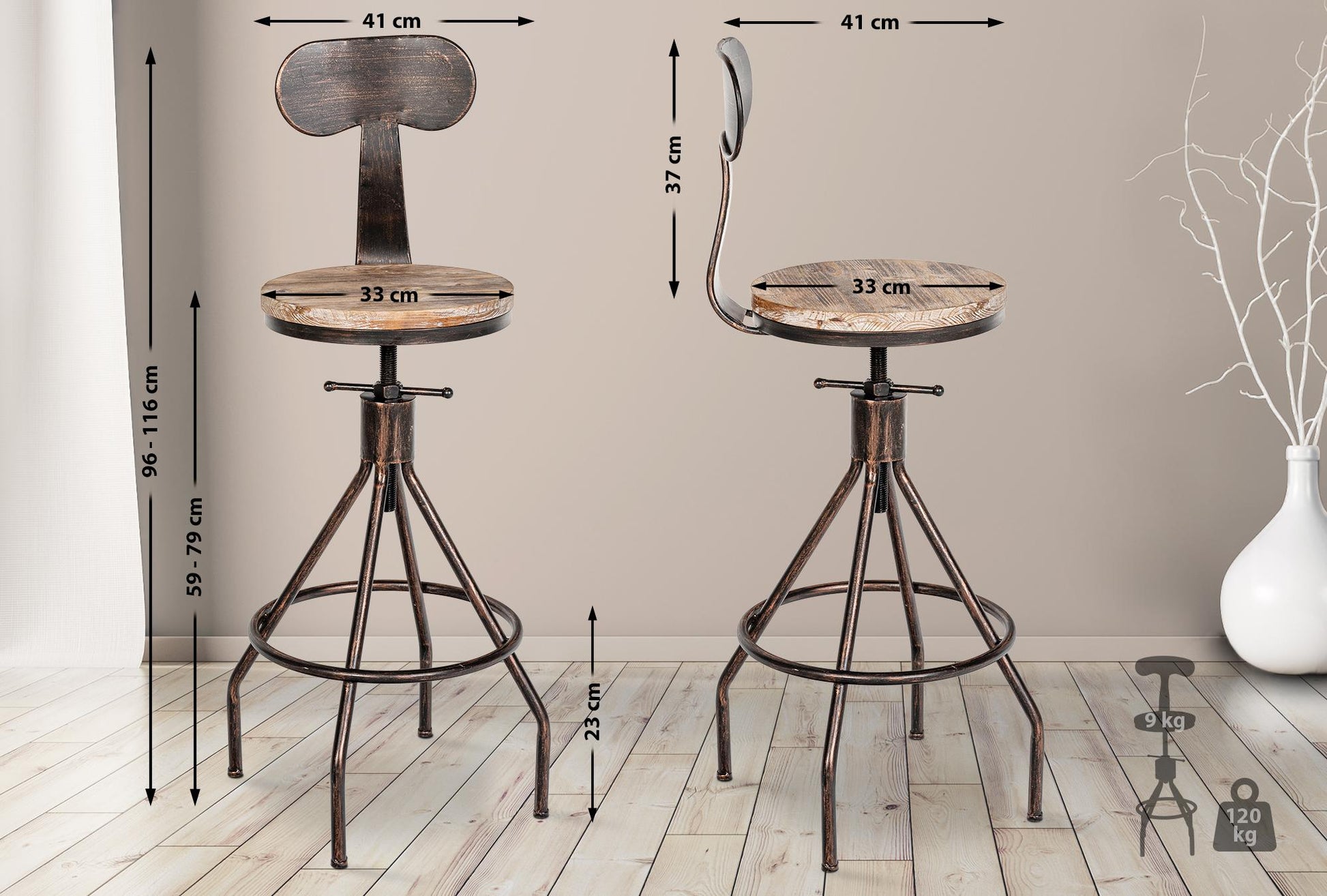 Deze schitterende barkruk kan op verschillende manieren worden ingezet dankzij het eenvoudige en stijlvolle ontwerp. De buitengewone uitstraling met conventionele materialen maakt van deze barkruk een bijzondere blikvanger. Op de houten ronde zitting is het comfortabel zitten. Zelfs zonder vulling biedt deze barkruk optimaal zitcomfort dankzij de metalen rugleuning en de individuele hoogteaanpassing. De voetsteun zorgt voor extra comfort. Het stevige metalen frame garandeert maximale stabiliteit en stevigheid.