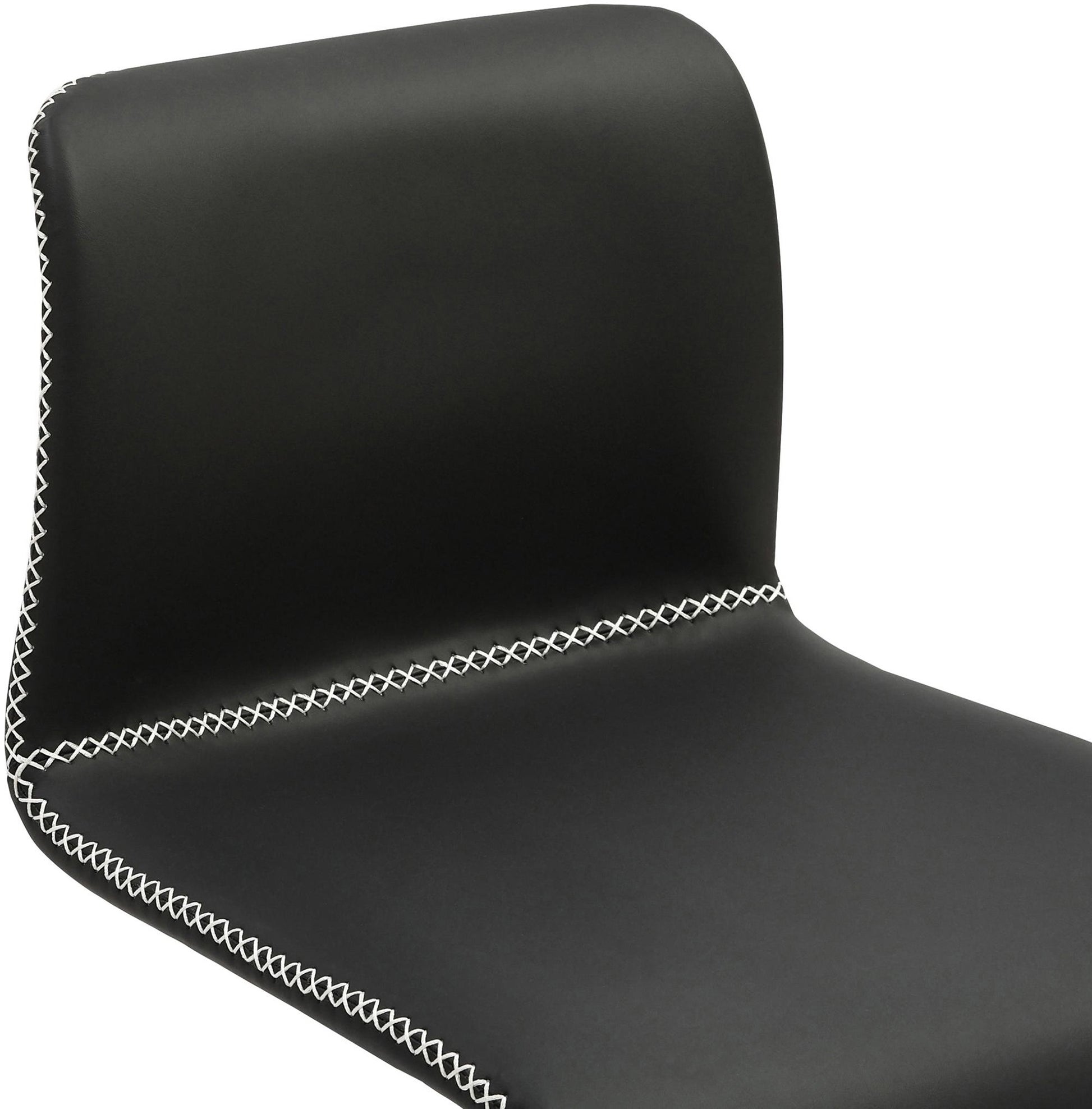 Het metalen frame in matzwart met stijlvolle bekleding en contrasterende stiksels geeft de kruk een elegante uitstraling. De zitting kan naar keuze worden bekleed met duurzame stof of luxe fluweel.