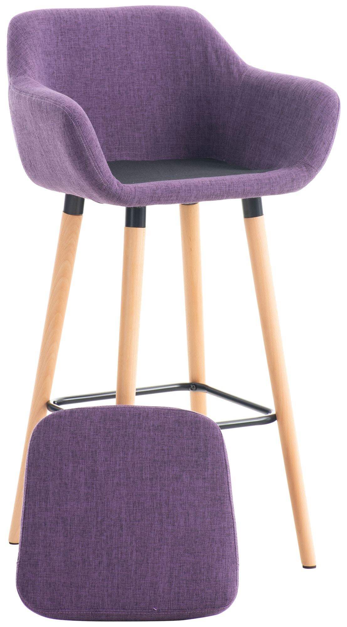 Deze barkruk creëert een bijzondere sfeer in elke bar dankzij zijn ontwerp dat lijkt op een loungestoel. Het aantrekkelijke uiterlijk gecombineerd met een comfortabele rugleuning maakt lange zitperioden zeer aangenaam. De stoffen bekleding van de zitschaal komt met een afneembaar kussen, dat door middel van klittenband op zijn plaats blijft. De hoes van het zitkussen kan eenvoudig verwijderd en gewassen worden met een ritssluiting. Het stevige beukenhouten frame met vier poten en een subtiele metalen voetsteun maakt het stijlvolle ontwerp van deze barkruk compleet. Een absoluut hoogtepunt voor uren van ontspanning aan de bar.