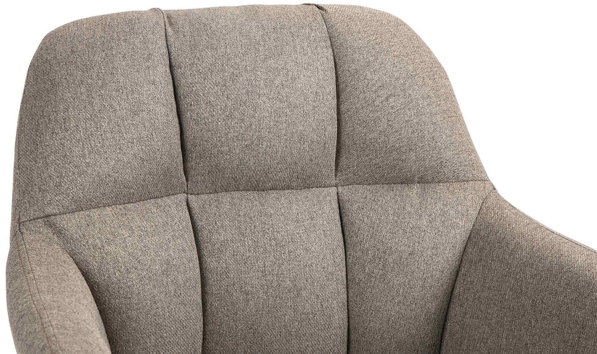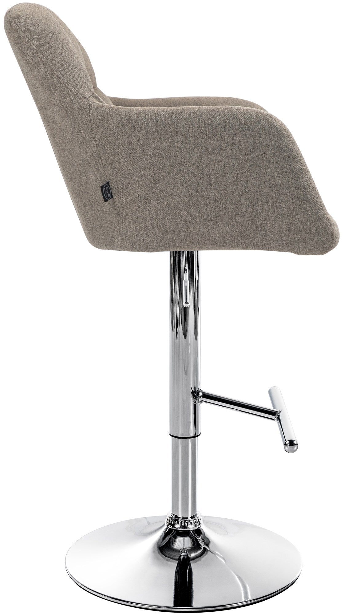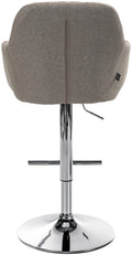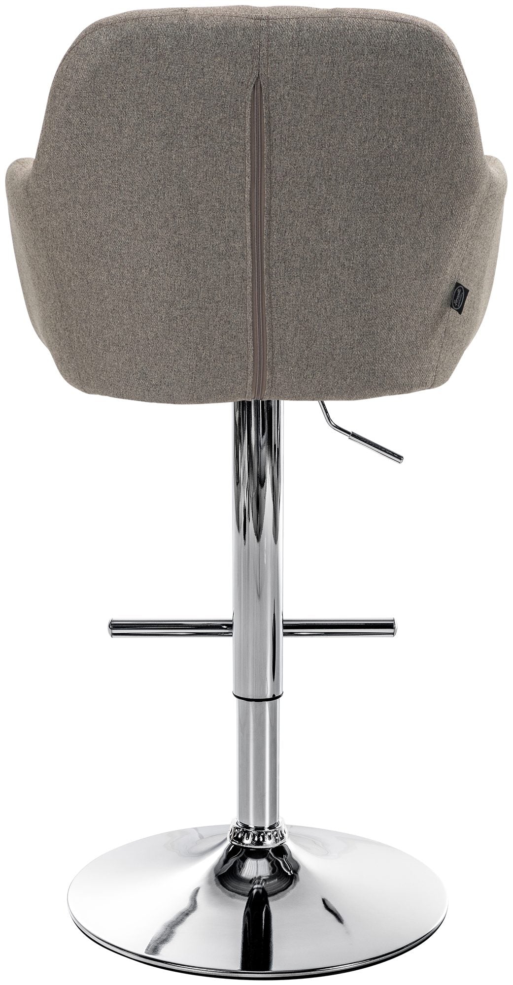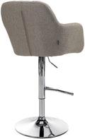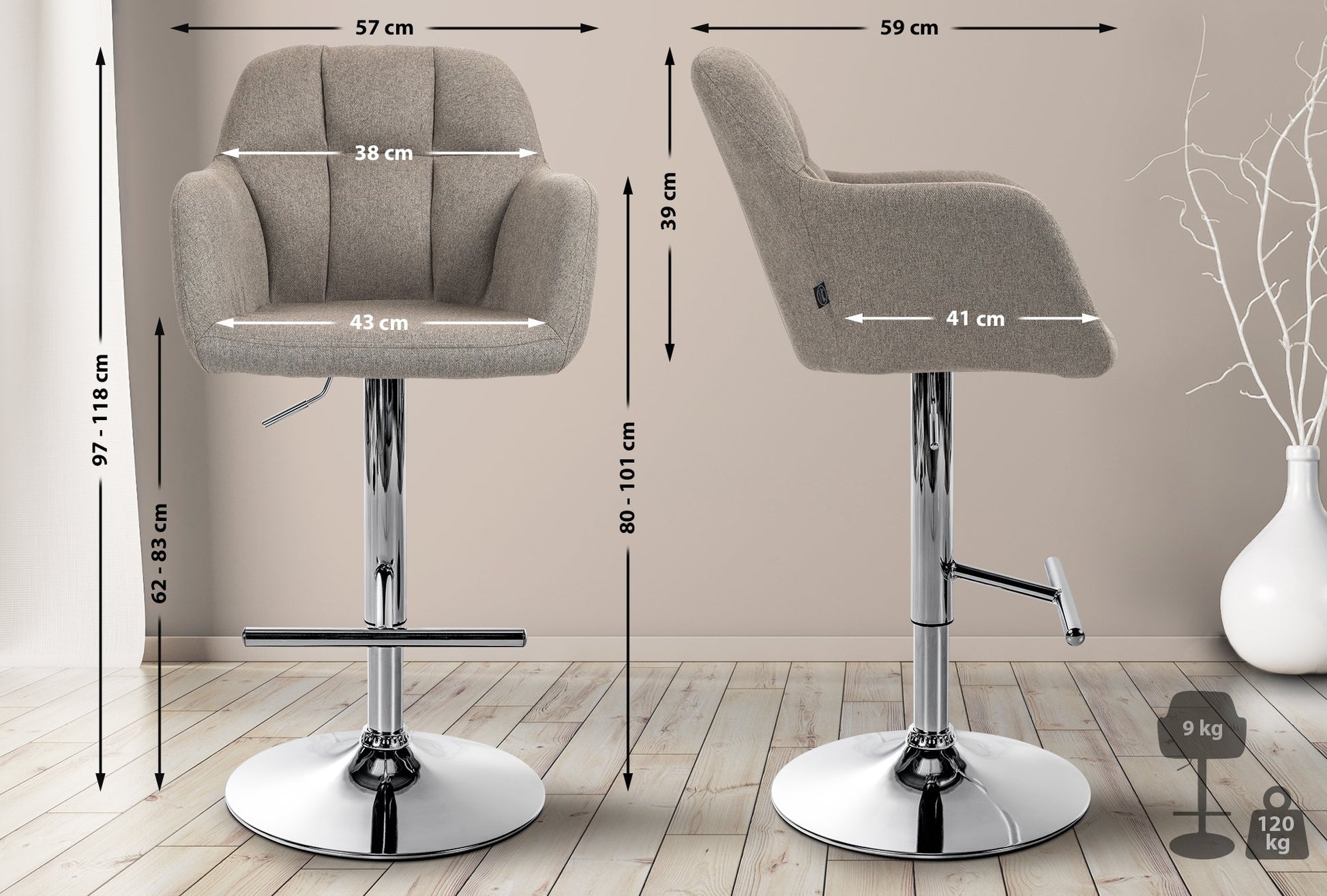 Deze stoffen barkruk biedt een functioneel design en buitengewoon zitcomfort. Met een verstelbare hoogte van 97 tot 118 cm, een breedte van 57 cm, en een diepte van 59 cm kan het eenvoudig worden afgesteld voor diverse barhoogtes. De zitting en rugleuning van 43 x 41 cm zijn ontworpen voor optimale ondersteuning en genot. Armleuningen en een voetsteun op de trompetvoet maken de functionaliteit compleet, en een vloerbeschermer voorkomt beschadiging van de ondergrond. De barkruk is stevig met een gewicht van 9 kg en kan tot 120 kg dragen. Dankzij de 360° draaifunctie geniet u van mobiliteit en flexibiliteit.