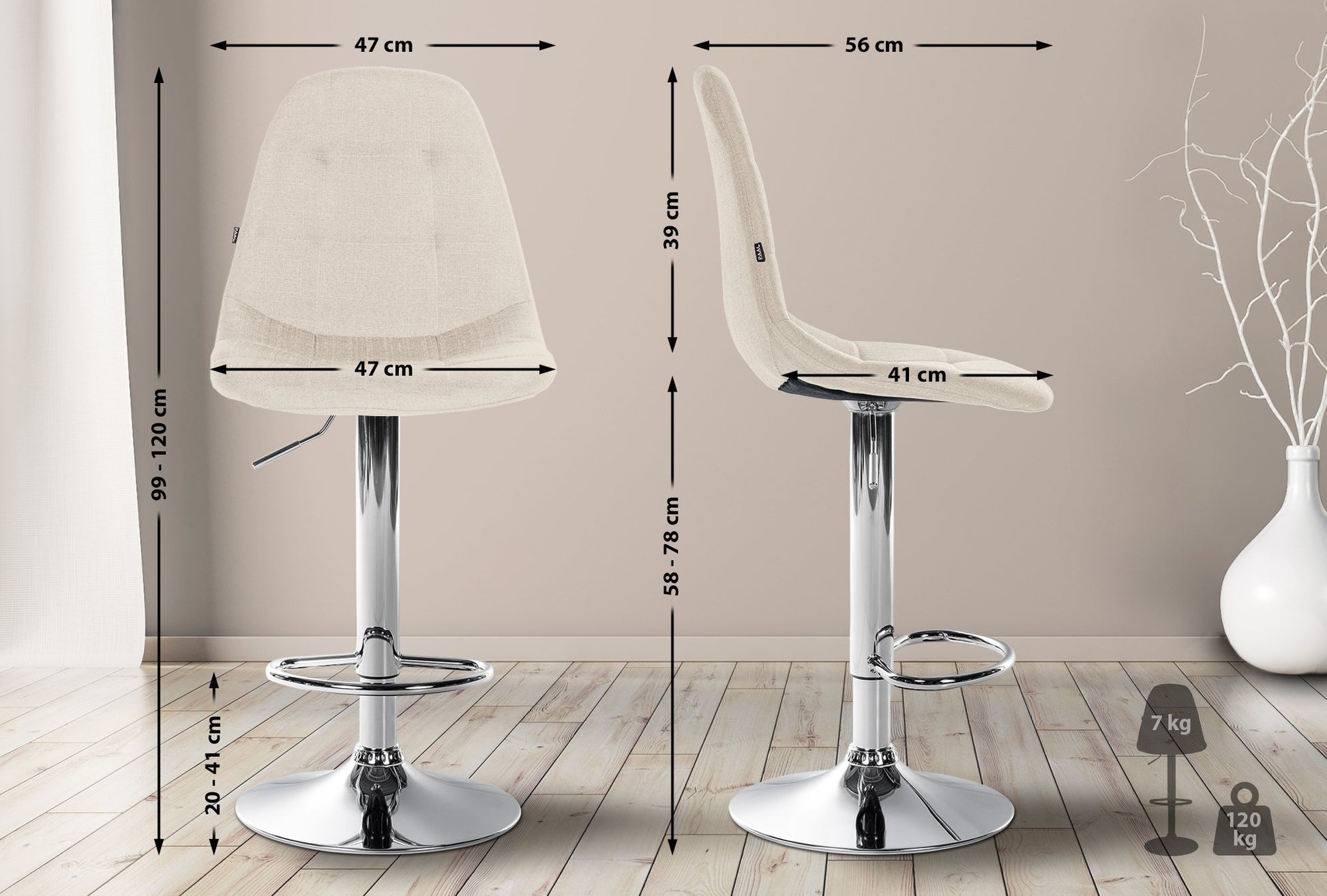 Zithoogte: 58 - 78 cm