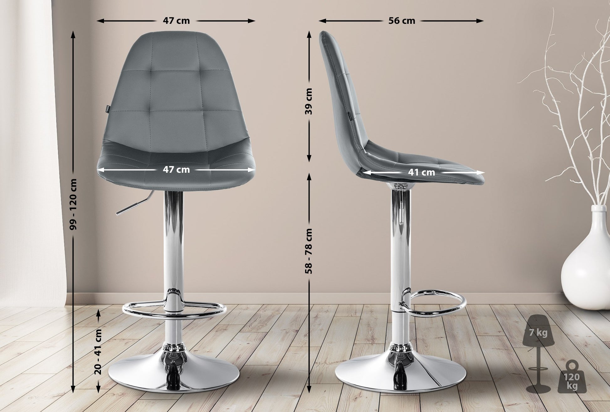 Het metalen frame is in hoogte verstelbaar, waardoor je de ideale zithoogte kunt bepalen. De 360 graden draaifunctie biedt grote bewegingsvrijheid. De geïntegreerde voetsteun verhoogt het zitcomfort, en de vloerbeschermers zorgen ervoor dat gevoelige oppervlakken beschermd blijven.